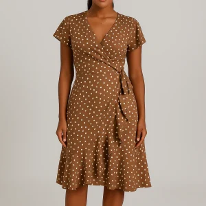 Robe portefeuille été femme imprimé feuillage manches courtes