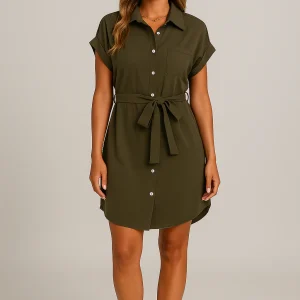 Robe chemise ceinturée femme