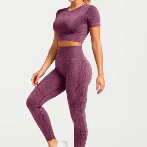 Ensemble legging push up femme avec top manches courtes sans couture