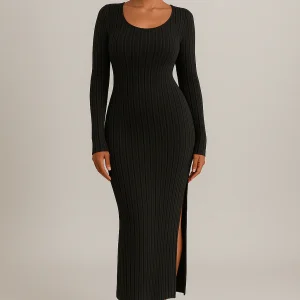 Robe côtelée à manches longues