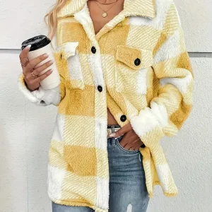 Veste d’Hiver en Peluche – & Manteau à Carreaux Haute Élasticité