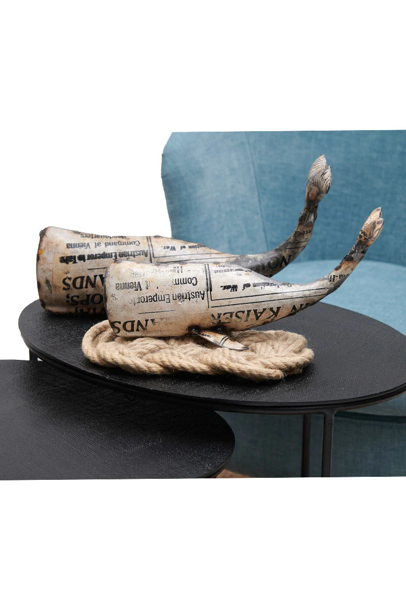 A poser sur un meuble ou dans une vitrine, cette baleine décorée de papier journal sera la pièce maitresse de votre décoration.