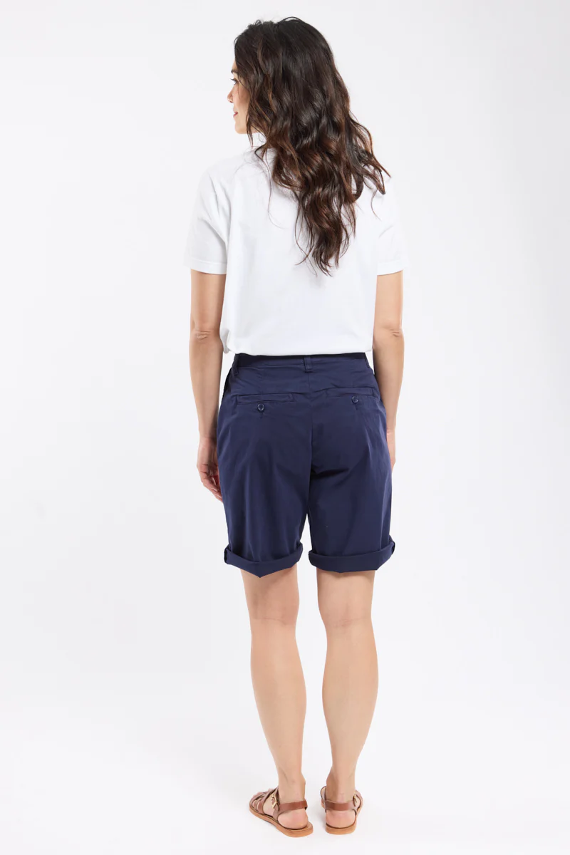 Ce bermuda trouve son inspiration dans les pantalons de travail à pont des marins.