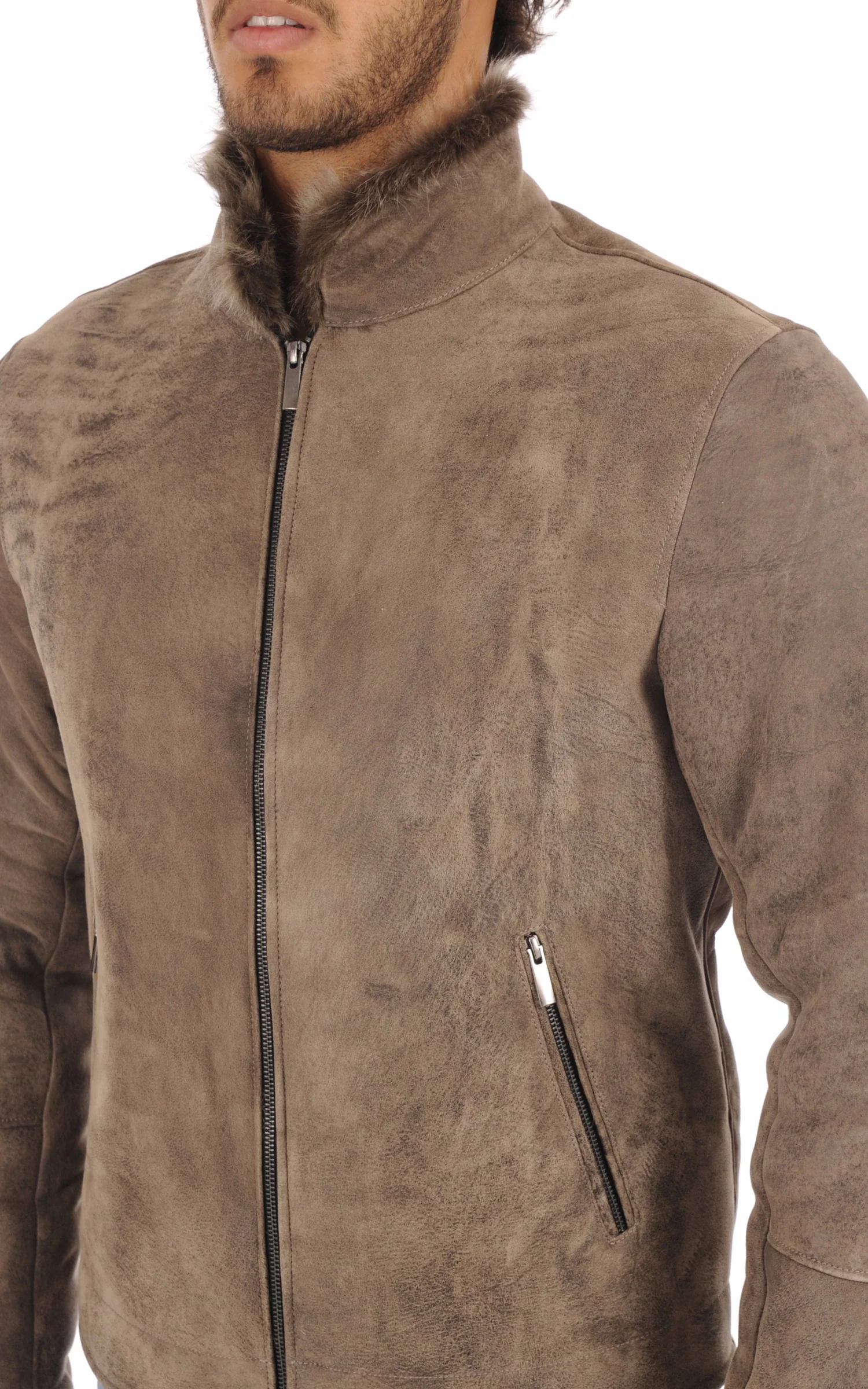 – Laine longue intérieure corps et manches couleur marbrée de beige et brun