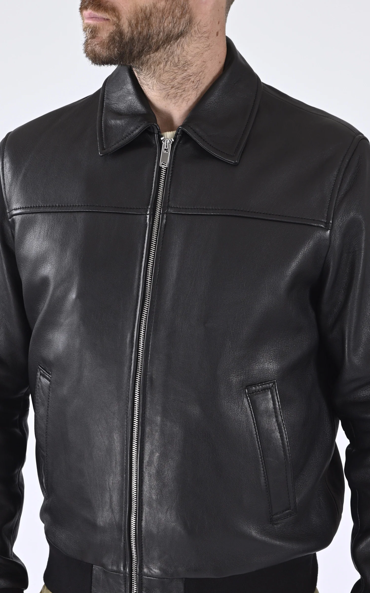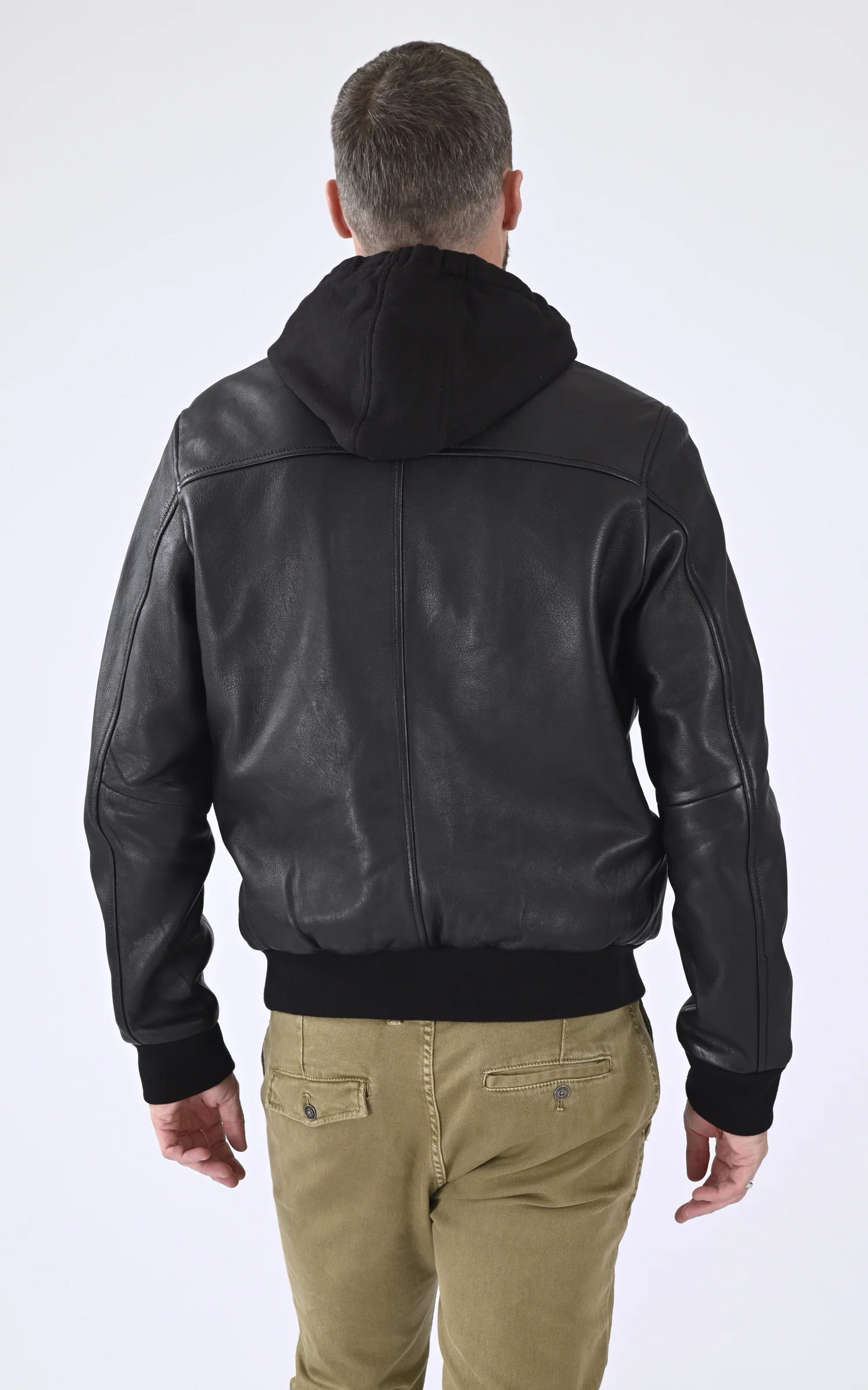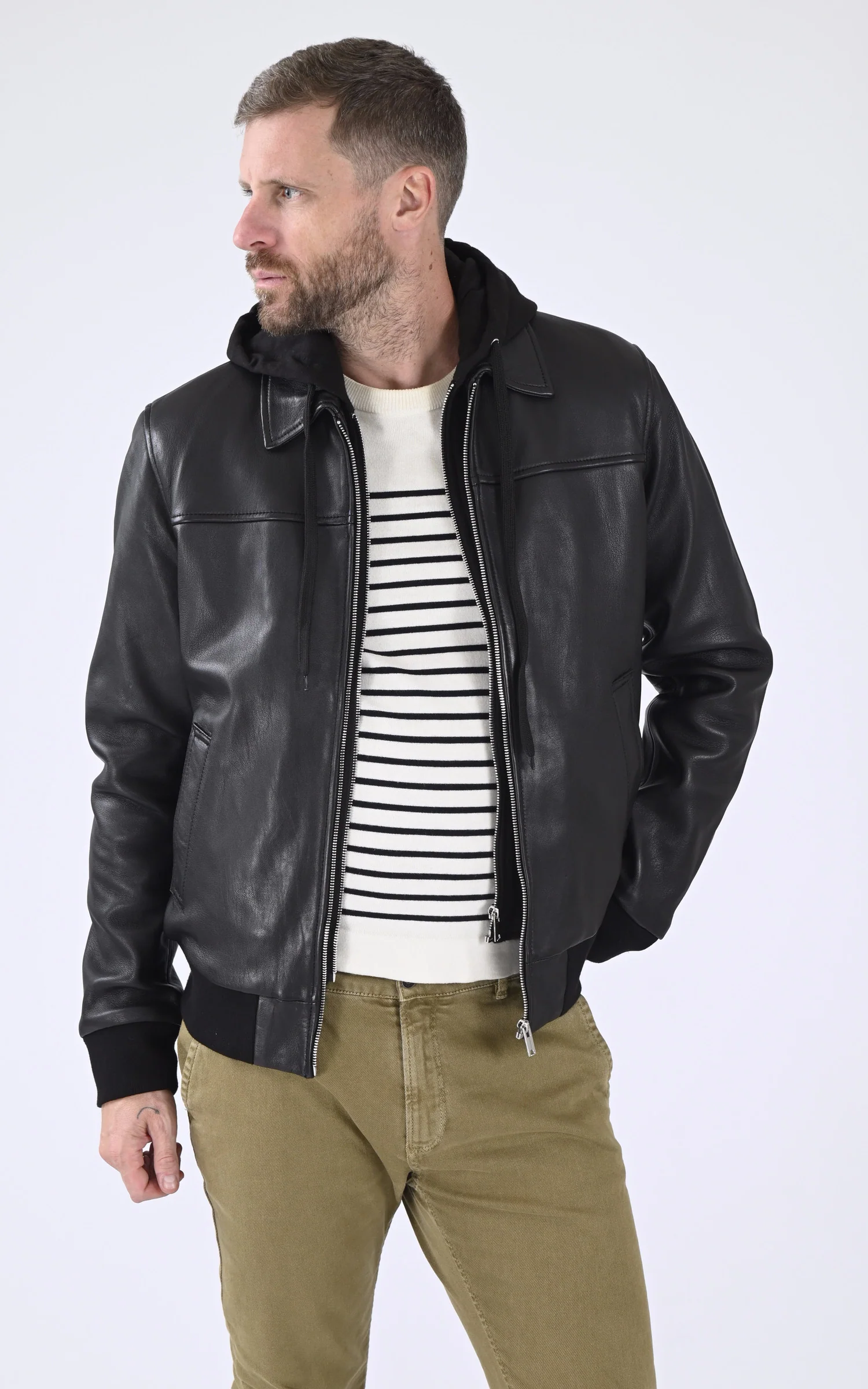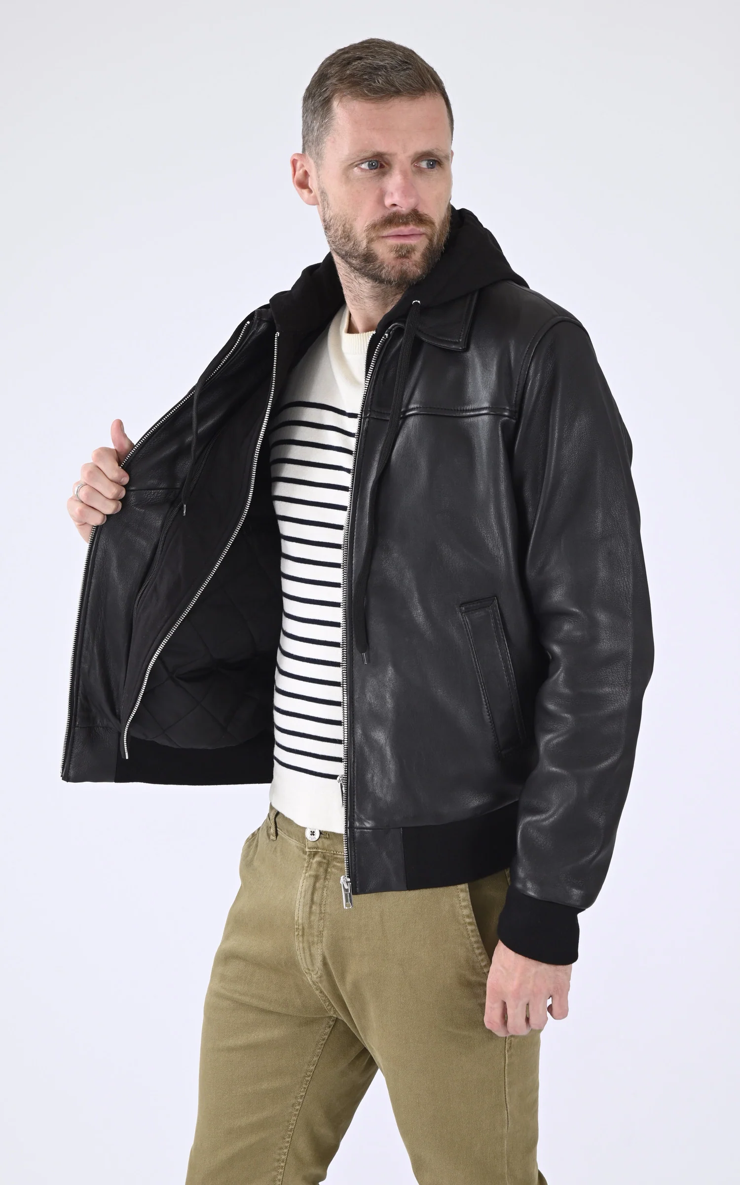 Blouson à capuche en cuir Amos Hood de la marque Serge Pariente.