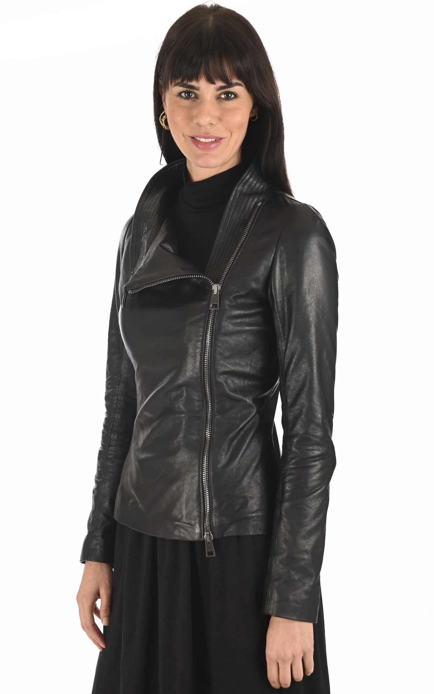 Blouson en cuir d’agneau souple et fin modèle Athena