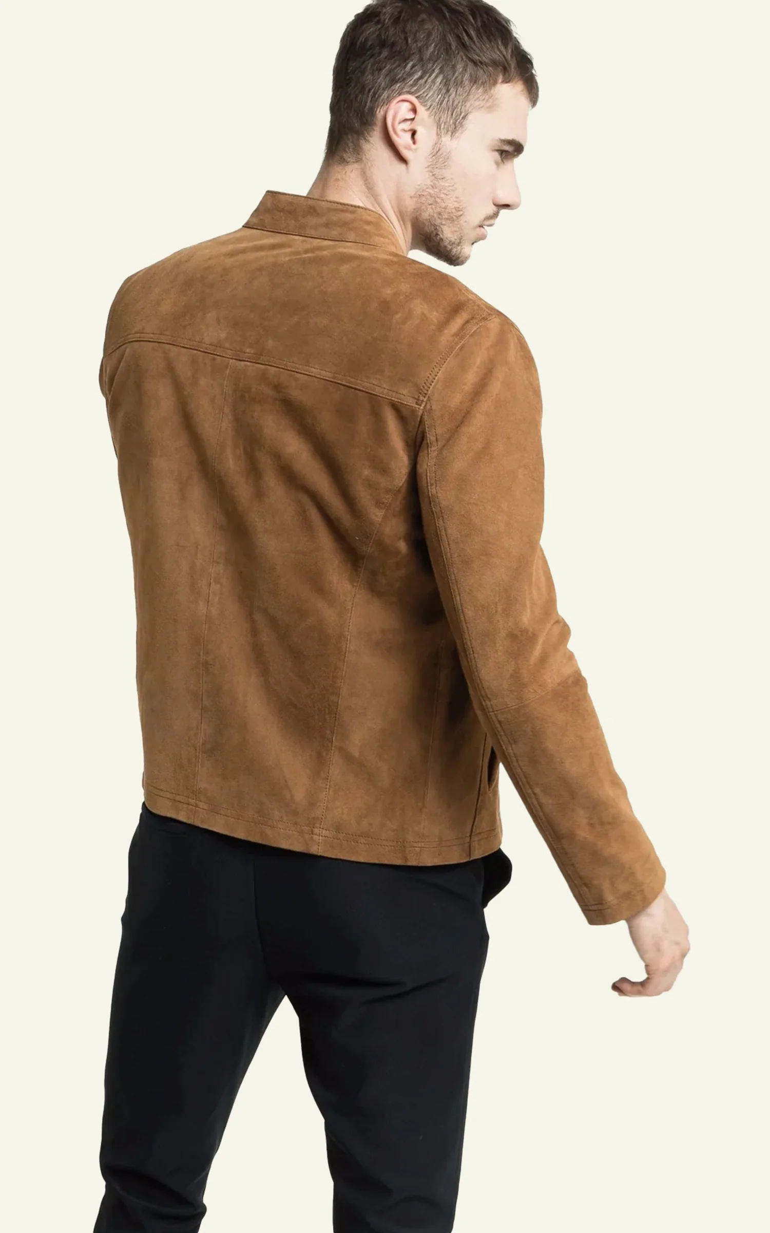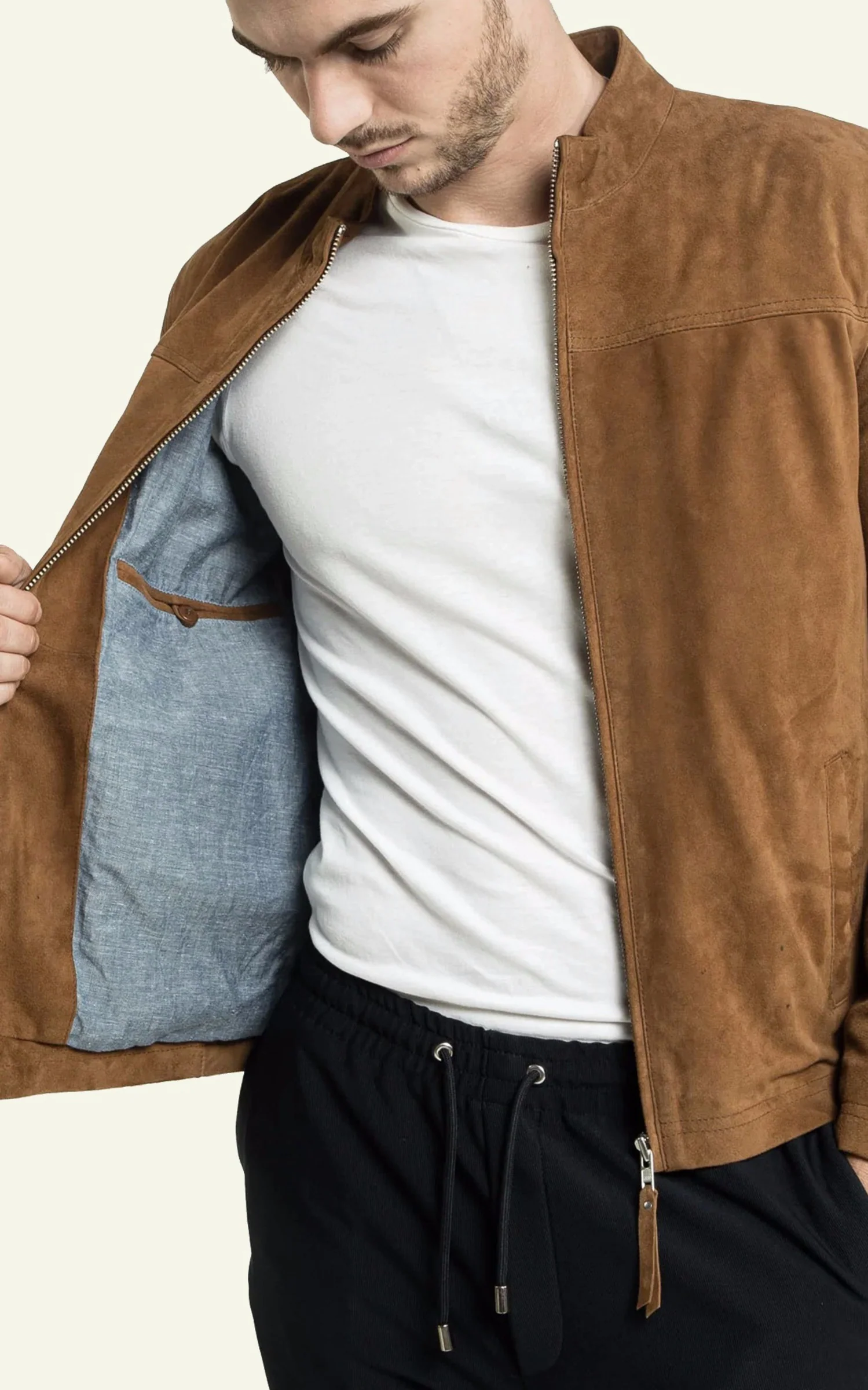 Blouson en cuir de chèvre velours modèle Sylvino de Serge Pariente.