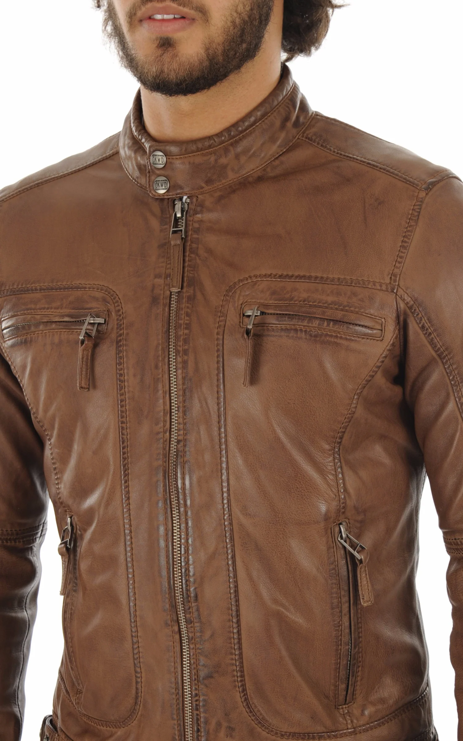 Blouson motard en cuir modèle Casey de la marque Oakwood.