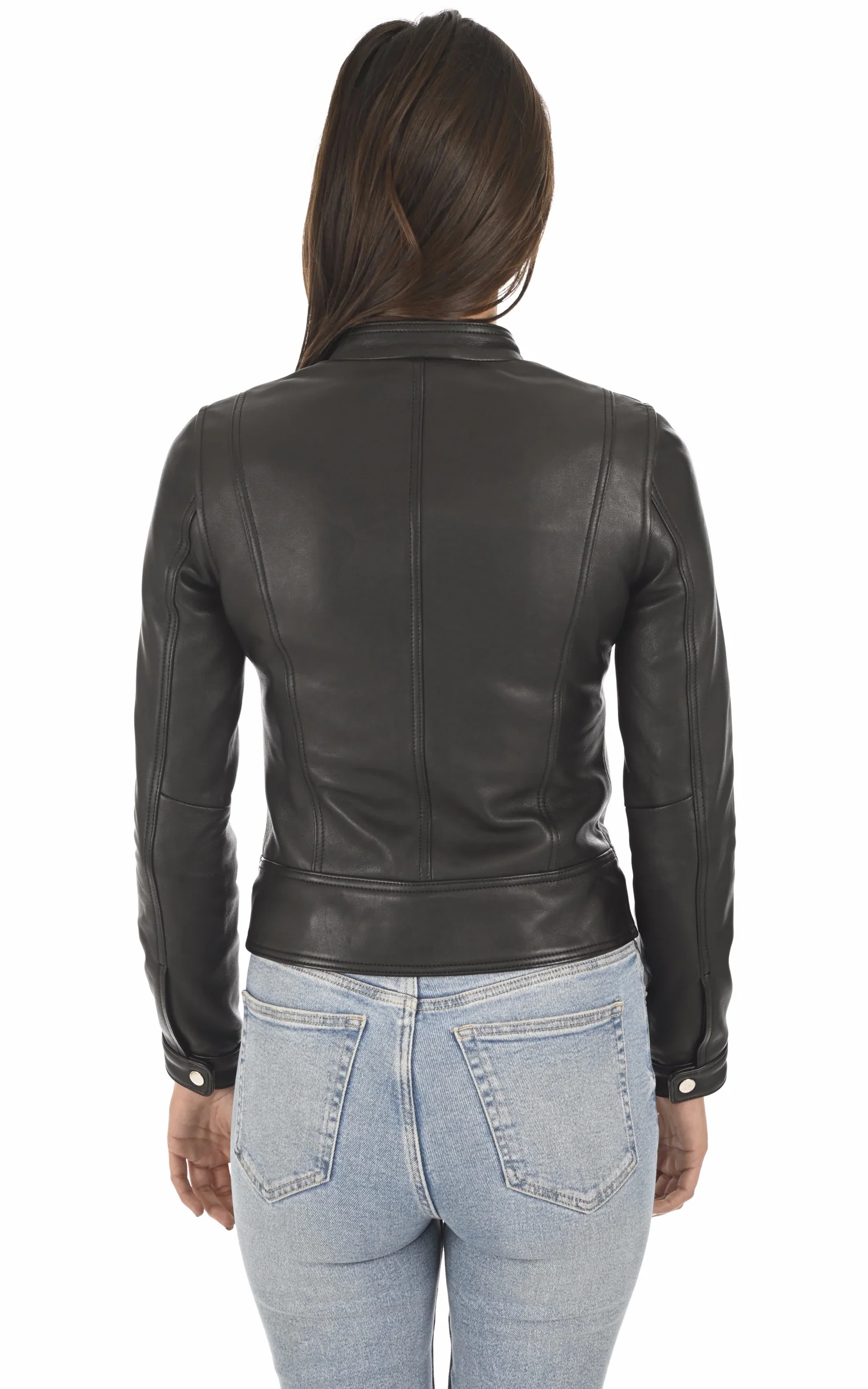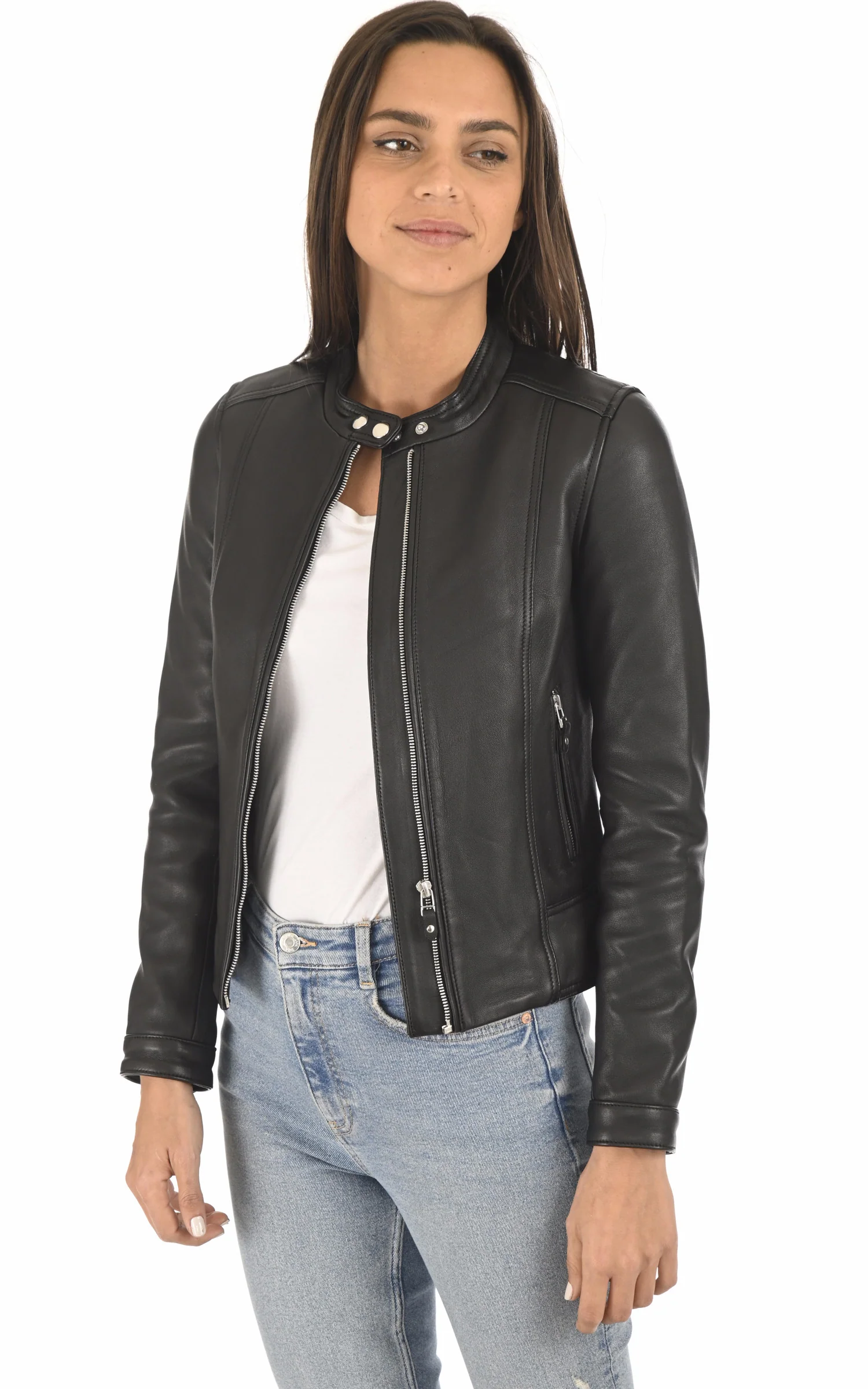 Blouson motard en cuir modèle Fiona de la marque Serge Pariente.