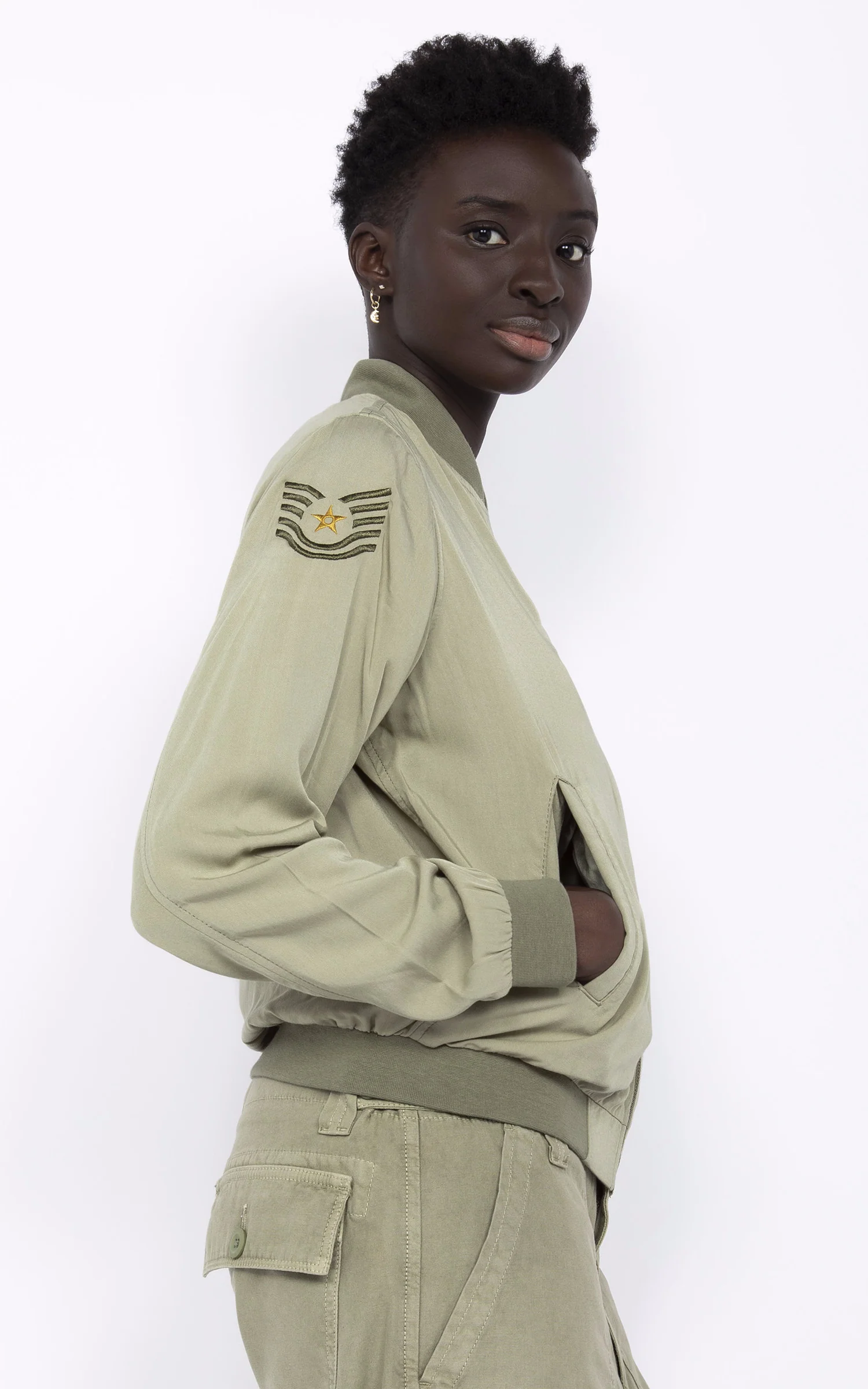 – Broderies poitrine et manche droite