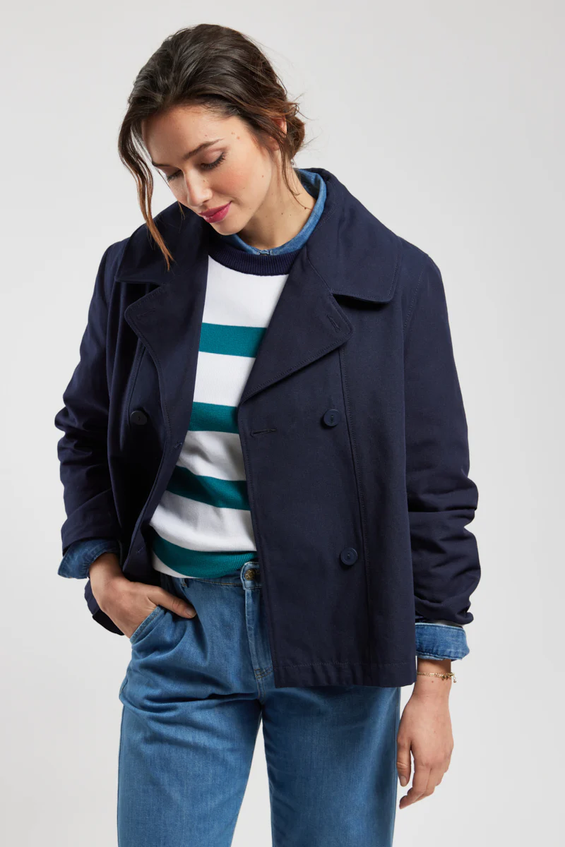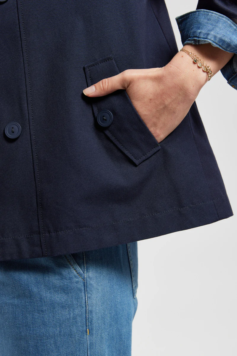 On craque pour ce caban au double boutonnage dans sa toile canvas qui apporte structure et modernité à votre look.