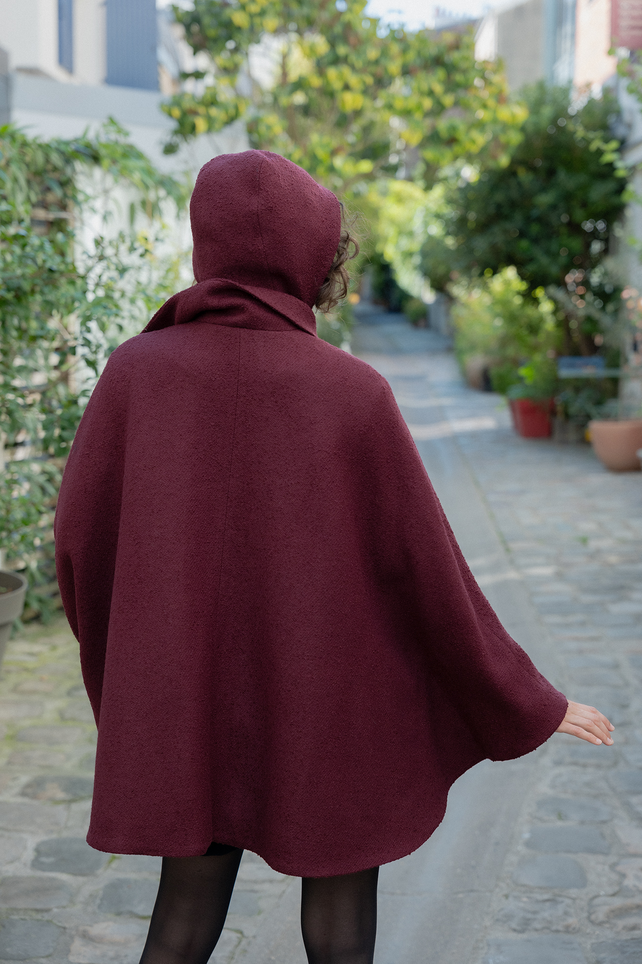 Garance porte la cape en taille unique. Elle mesure 1m69 et porte habituellement une taille 36/38.