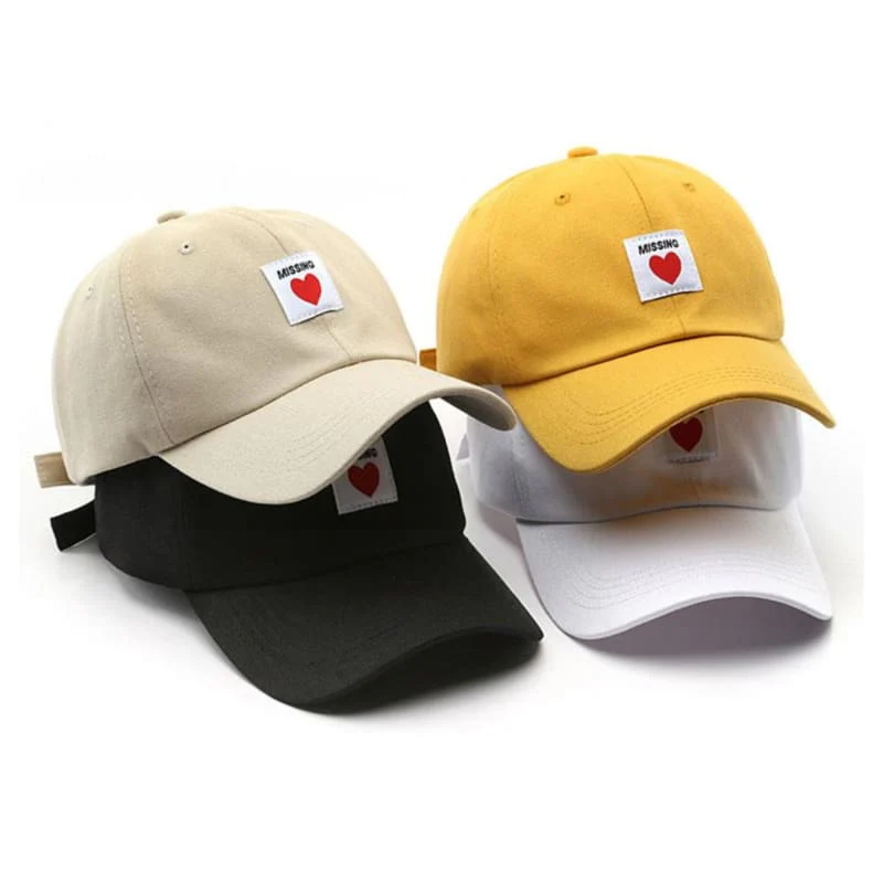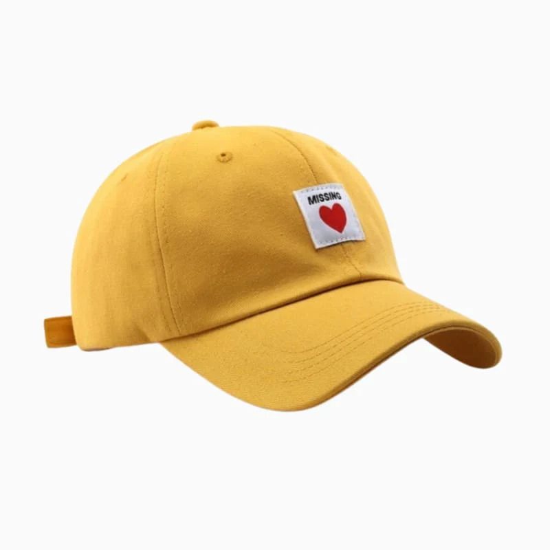 La Casquette Missing Love, une casquette avec une broderie en forme de cœur, alliant confort et style pour un look doux et original.