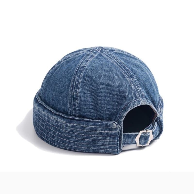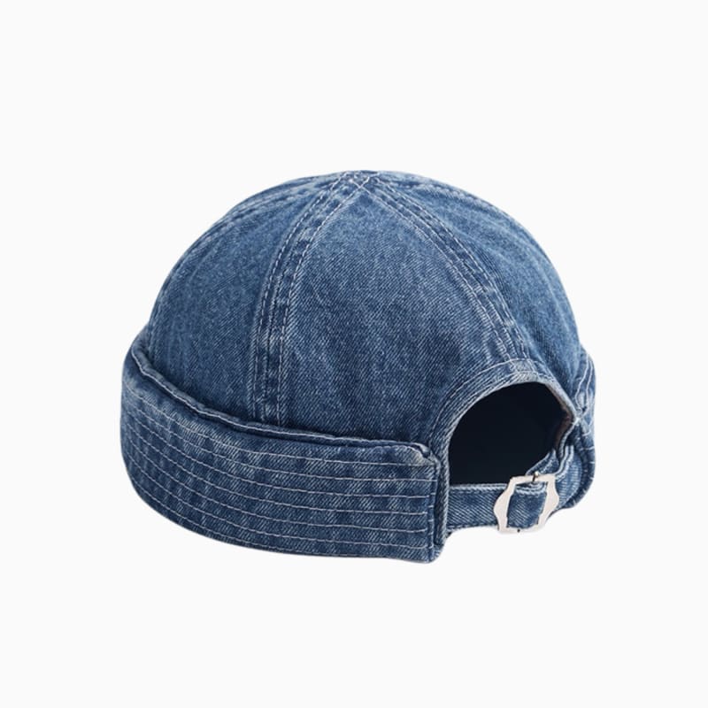 La Casquette Sans Visière Denim, une casquette au style décontracté et moderne, fabriquée en denim pour un look brut et authentique, alliant confort et originalité.