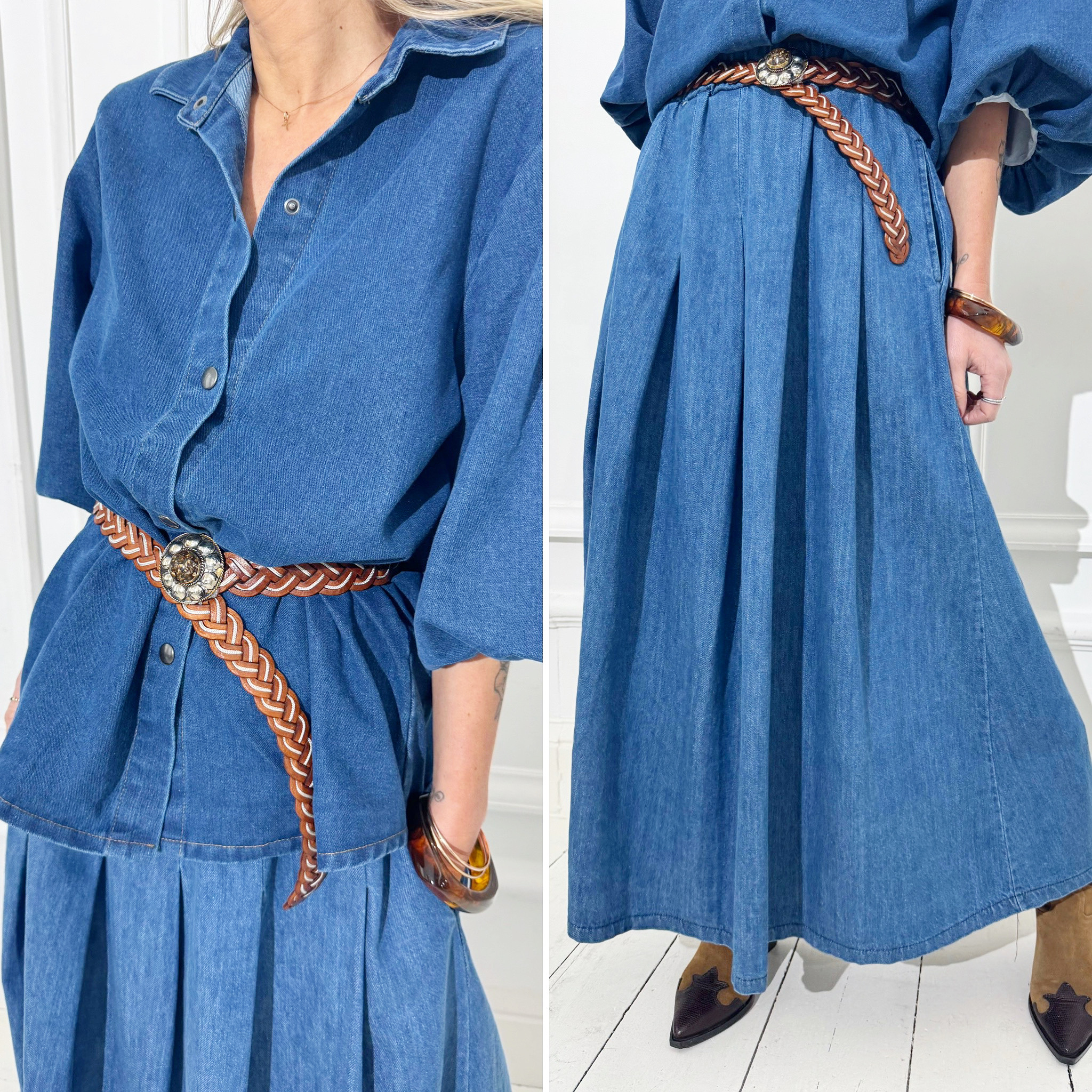 Ceinture tressée cuir camel boucle bijoux