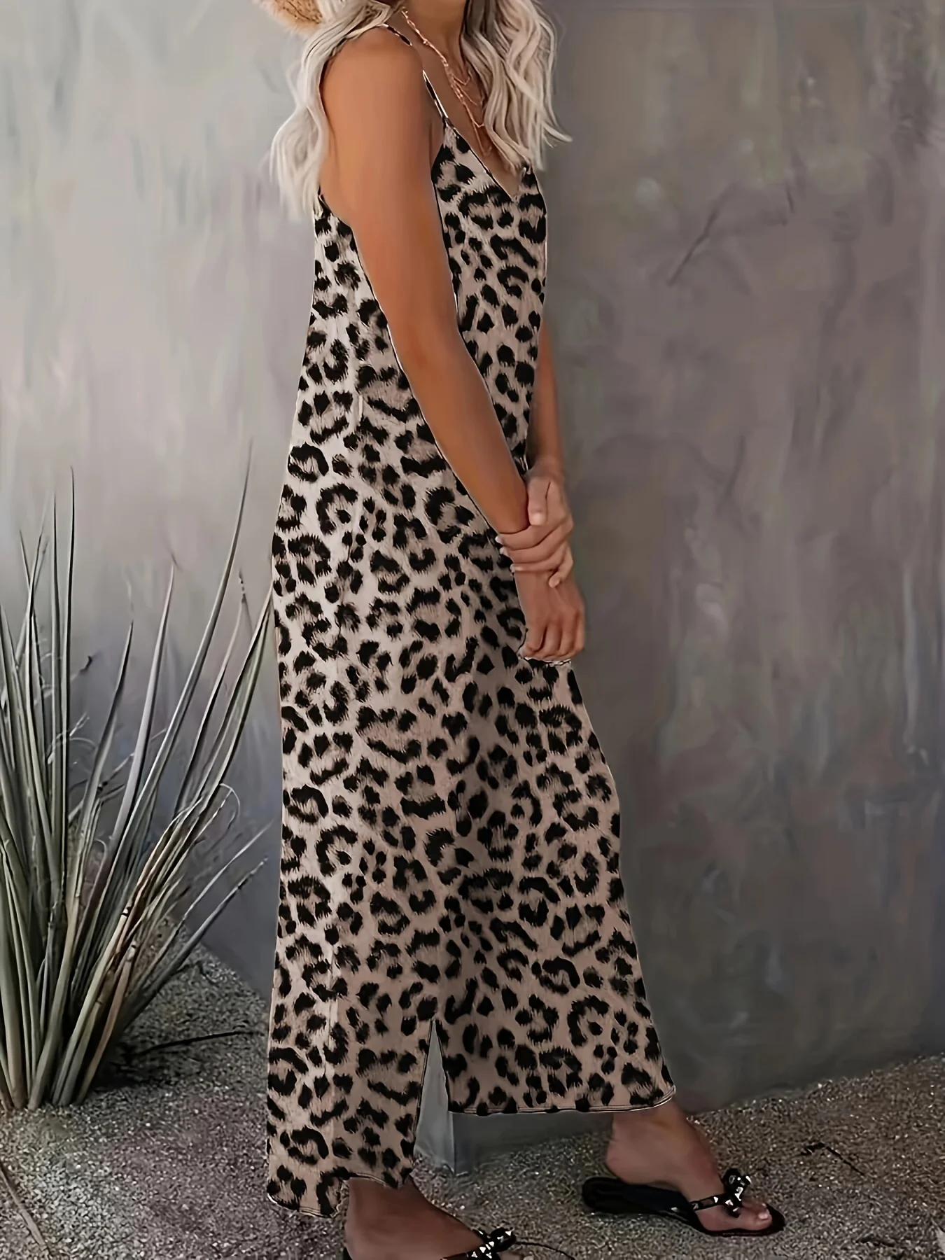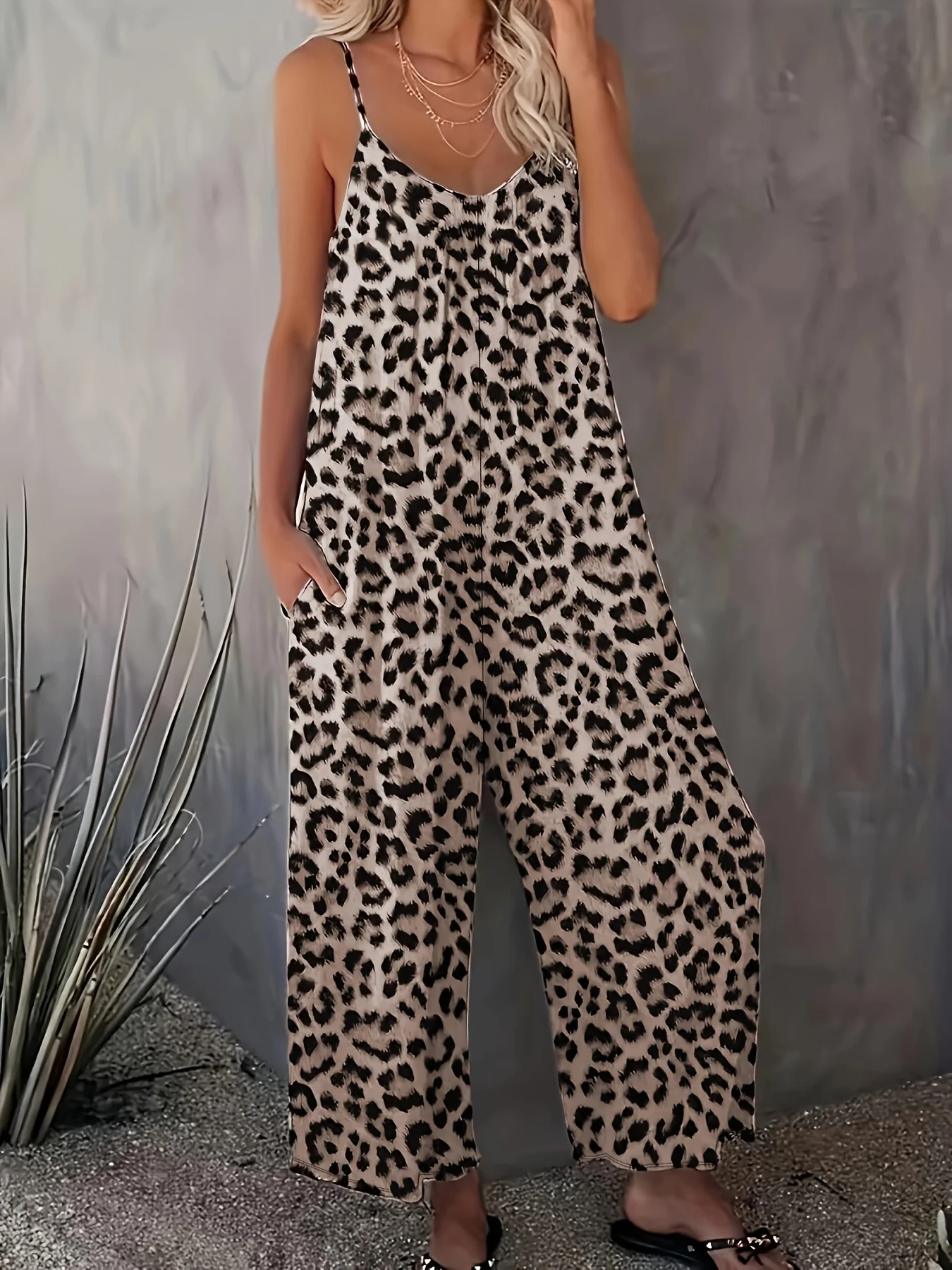 Affirmez votre style avec cette combinaison fluide à motif léopard, idéale pour un look estival audacieux et tendance. Sa coupe ample et ses fines bretelles en font une pièce à la fois confortable et stylée.