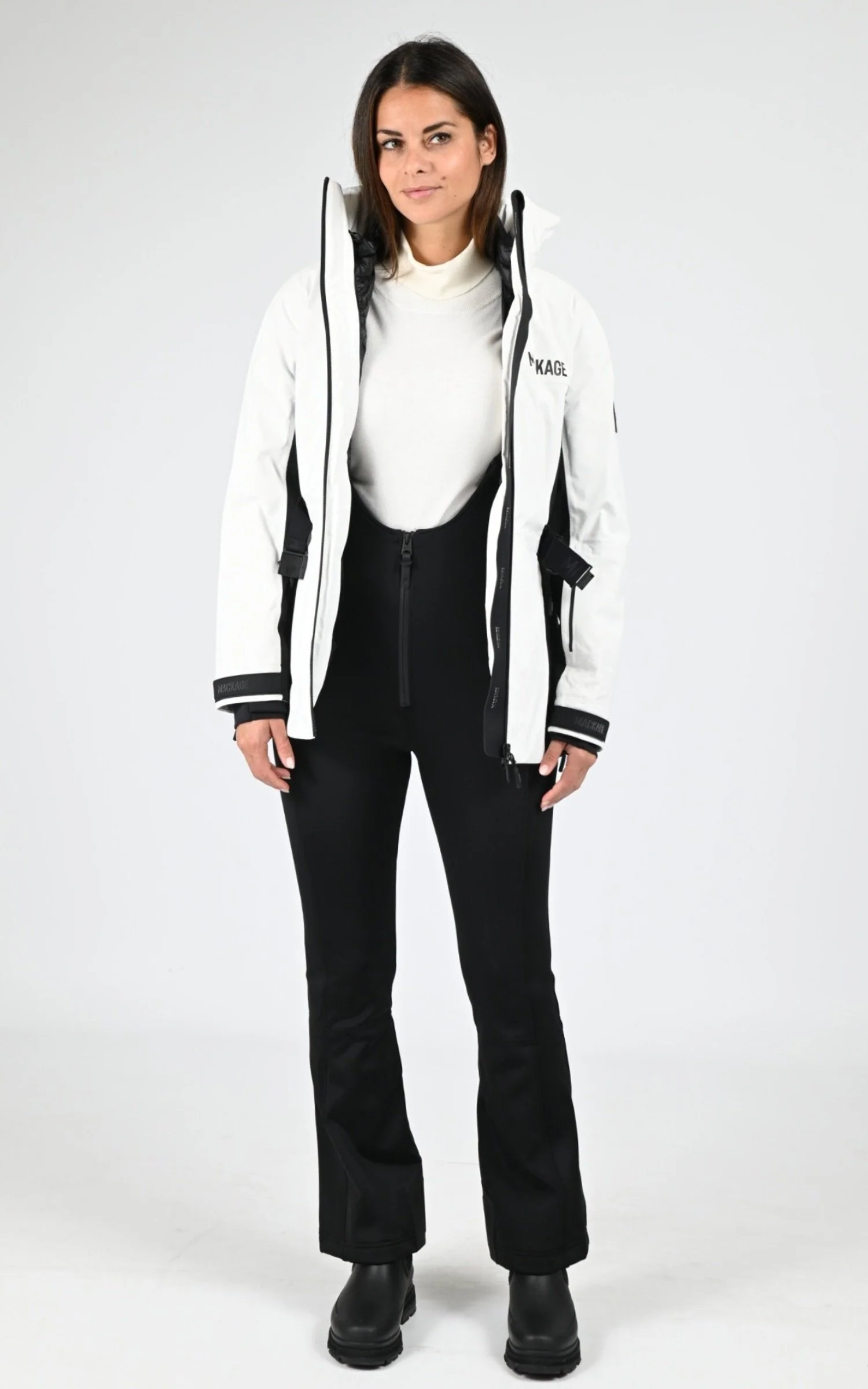 Logo Mackage ton sur ton à l’arrière du modèle