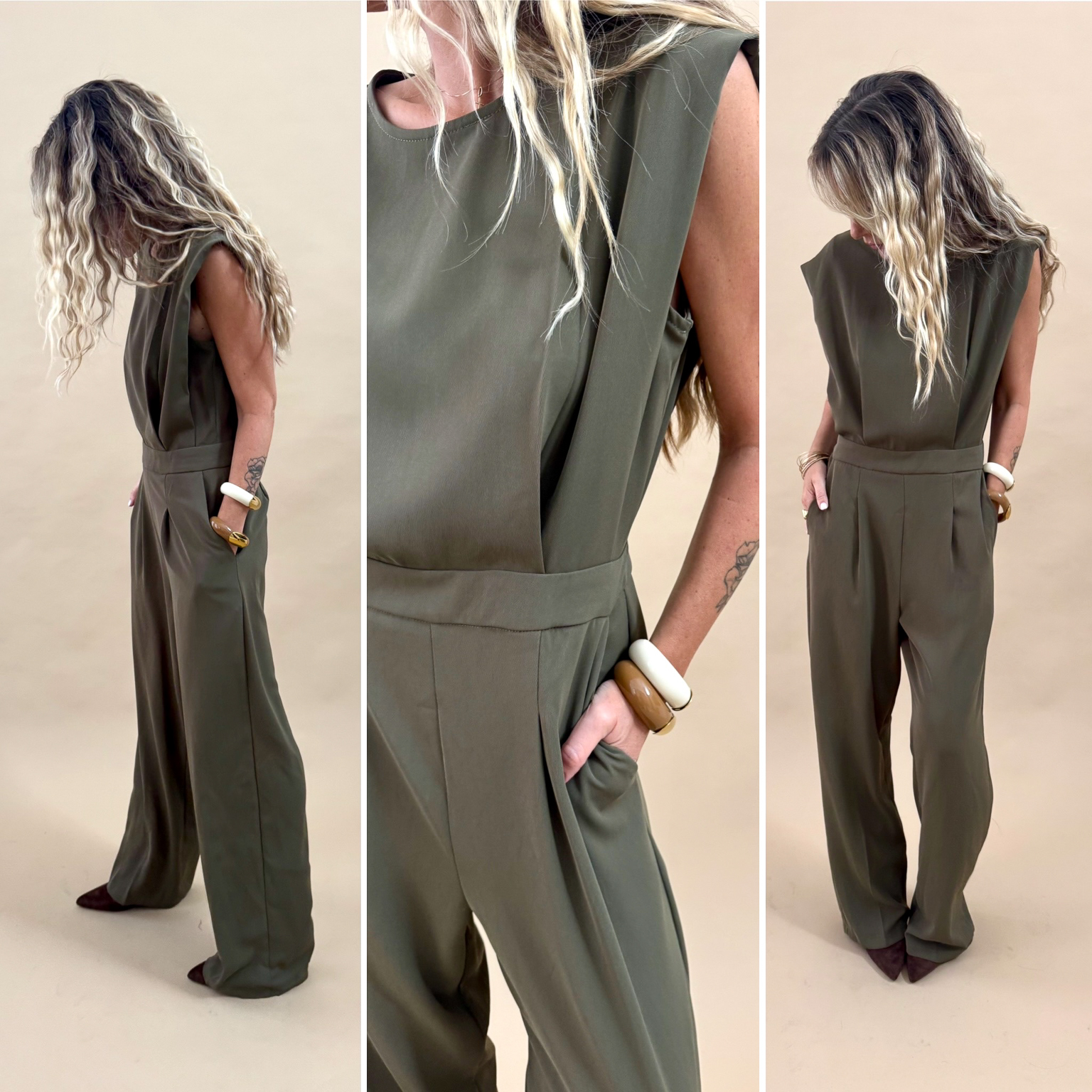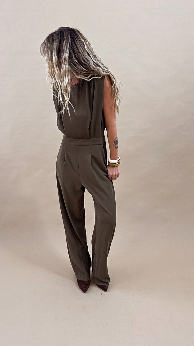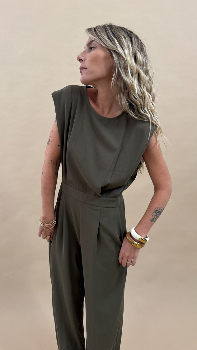La combinaison kaki à pinces aux finitions soignées, pour un look élégant en toutes occasions !