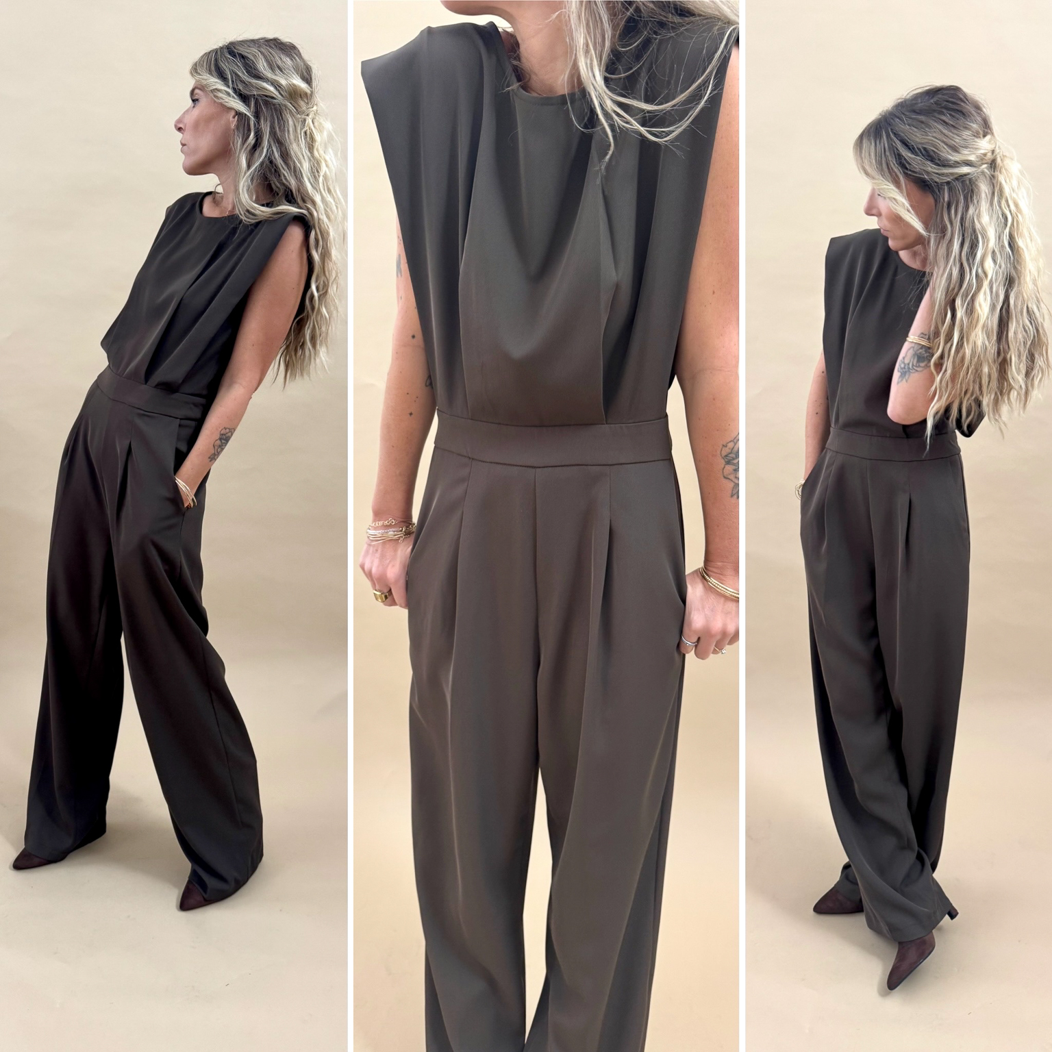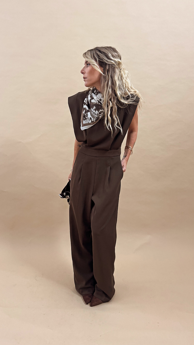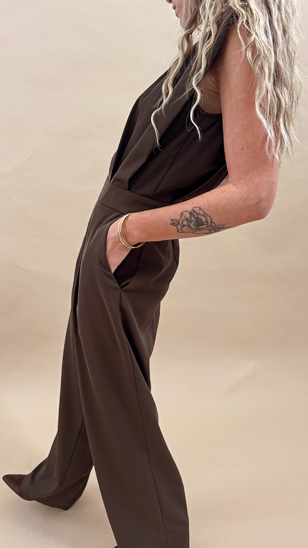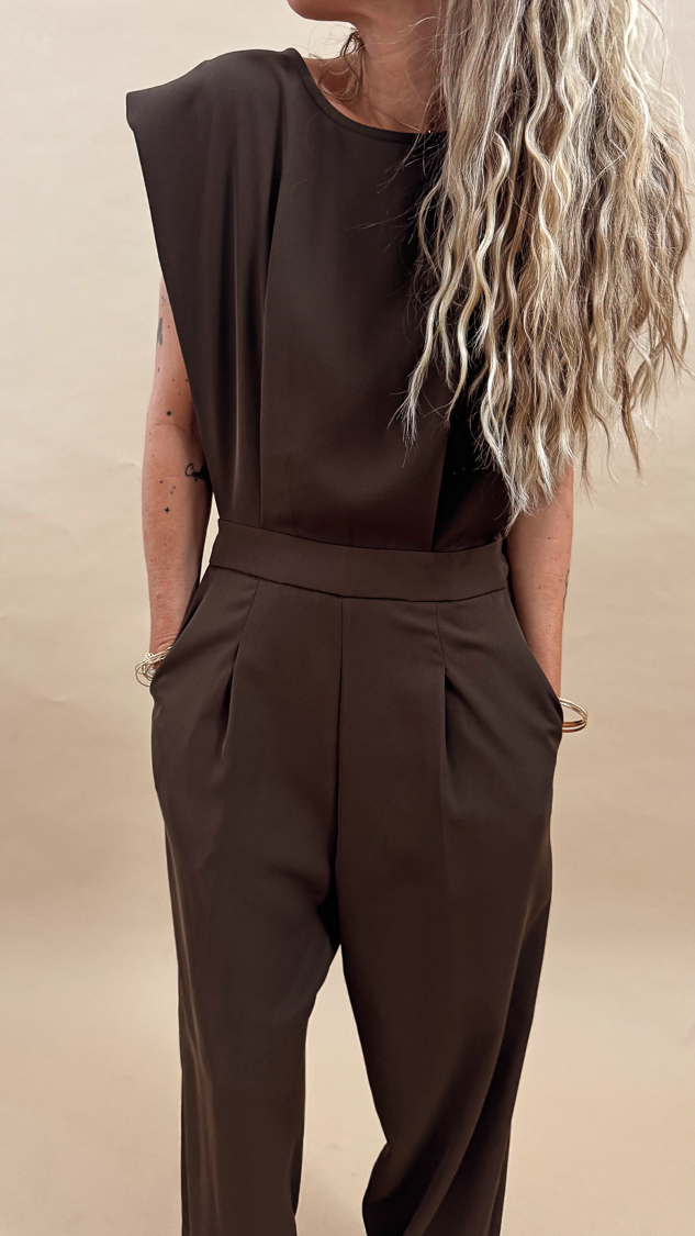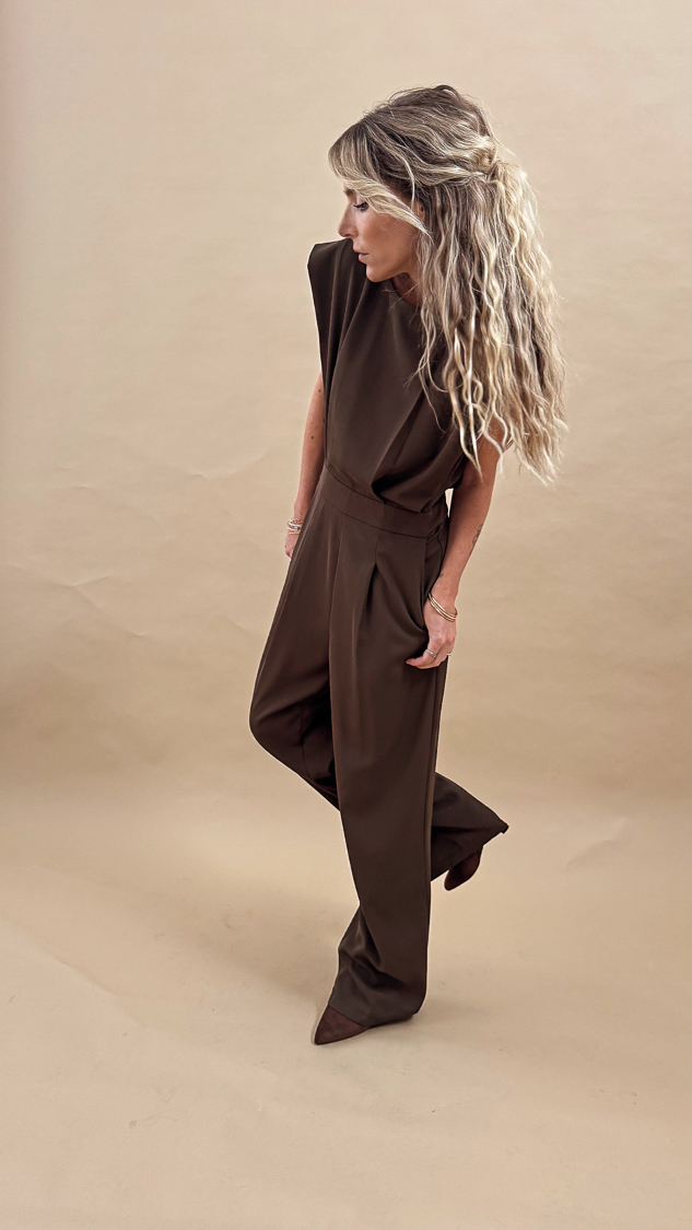 La combinaison marron à pinces aux finitions soignées, pour un look élégant en toutes occasions !