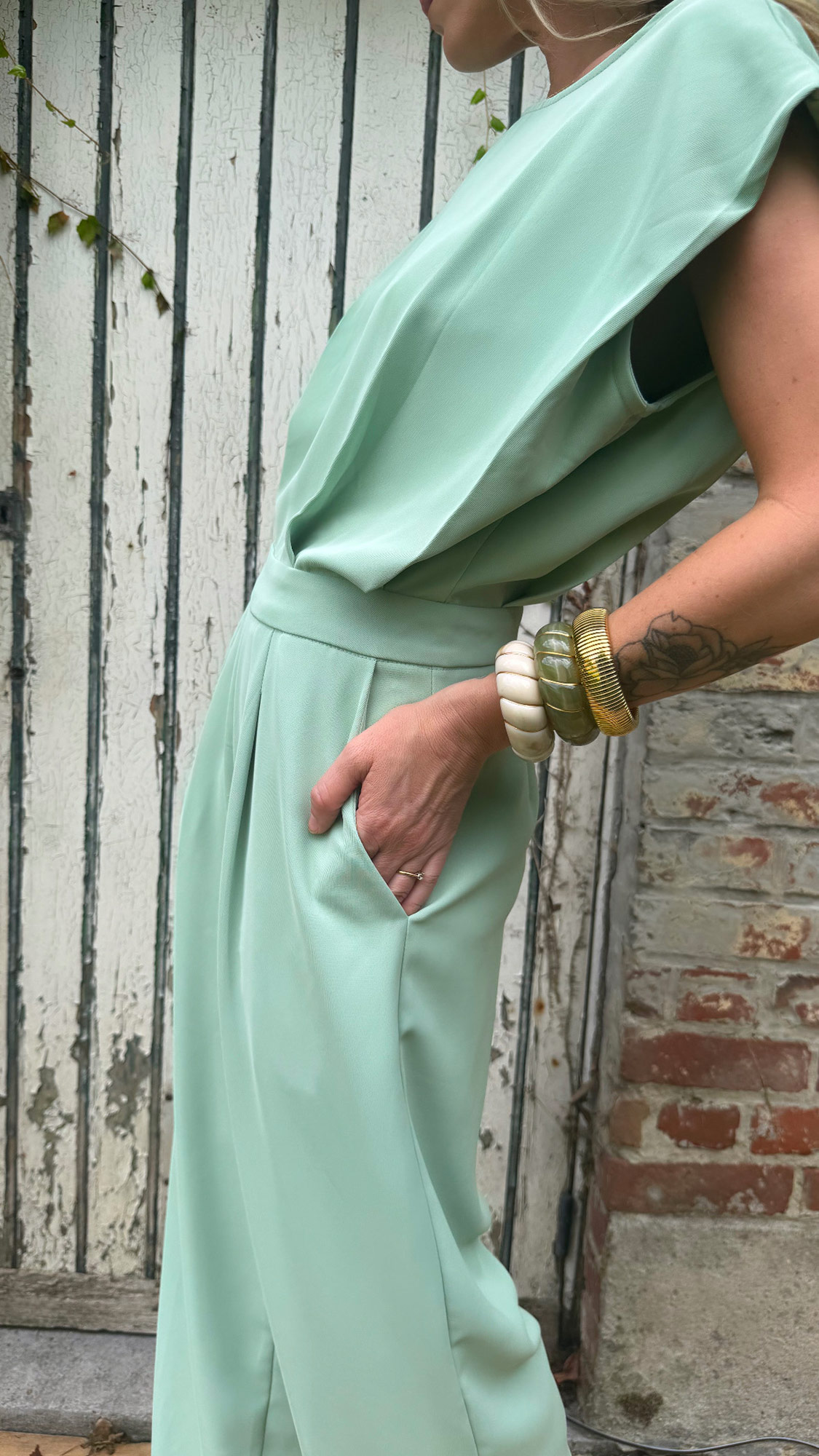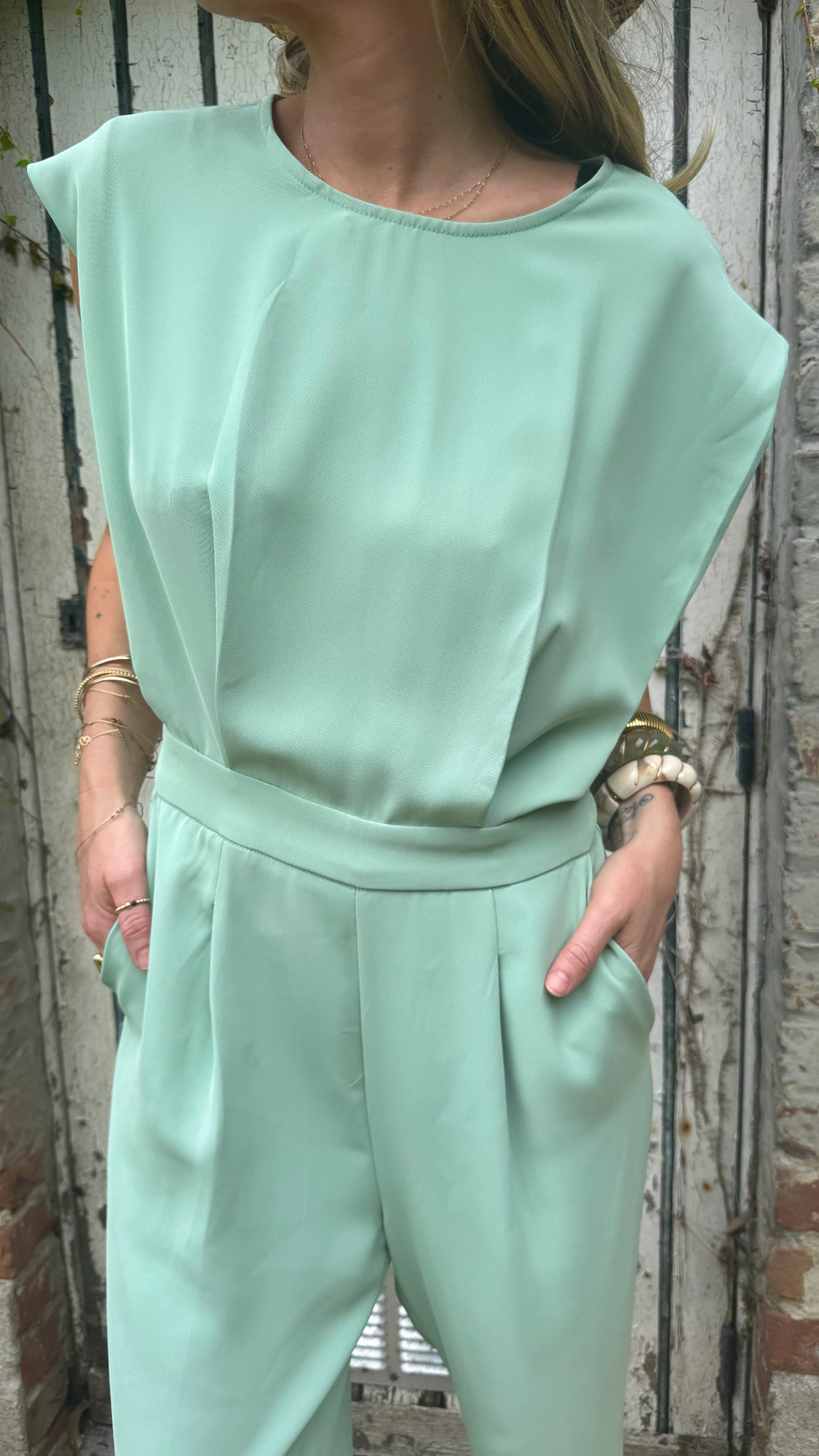 La combinaison verte à pinces aux finitions soignées, pour un look élégant en toutes occasions !