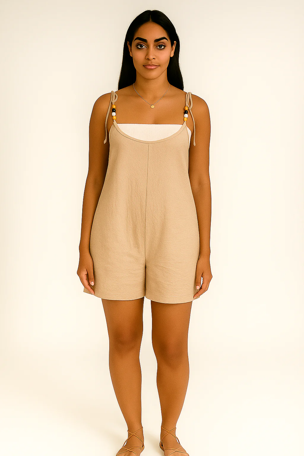 Léger, fluide et stylé, ce combishort estival incarne l’élégance naturelle. Sa coupe ample et ses détails soignés en font une pièce à la fois confortable et tendance pour les journées ensoleillées.