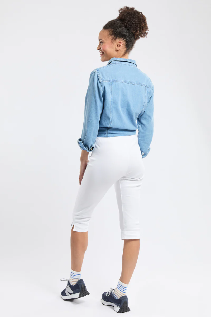 La côte 2/2 et la taille élastiquée permettent une aisance à toute épreuve et fait de ce modèle un « best seller » indispensable à votre garde-robe !