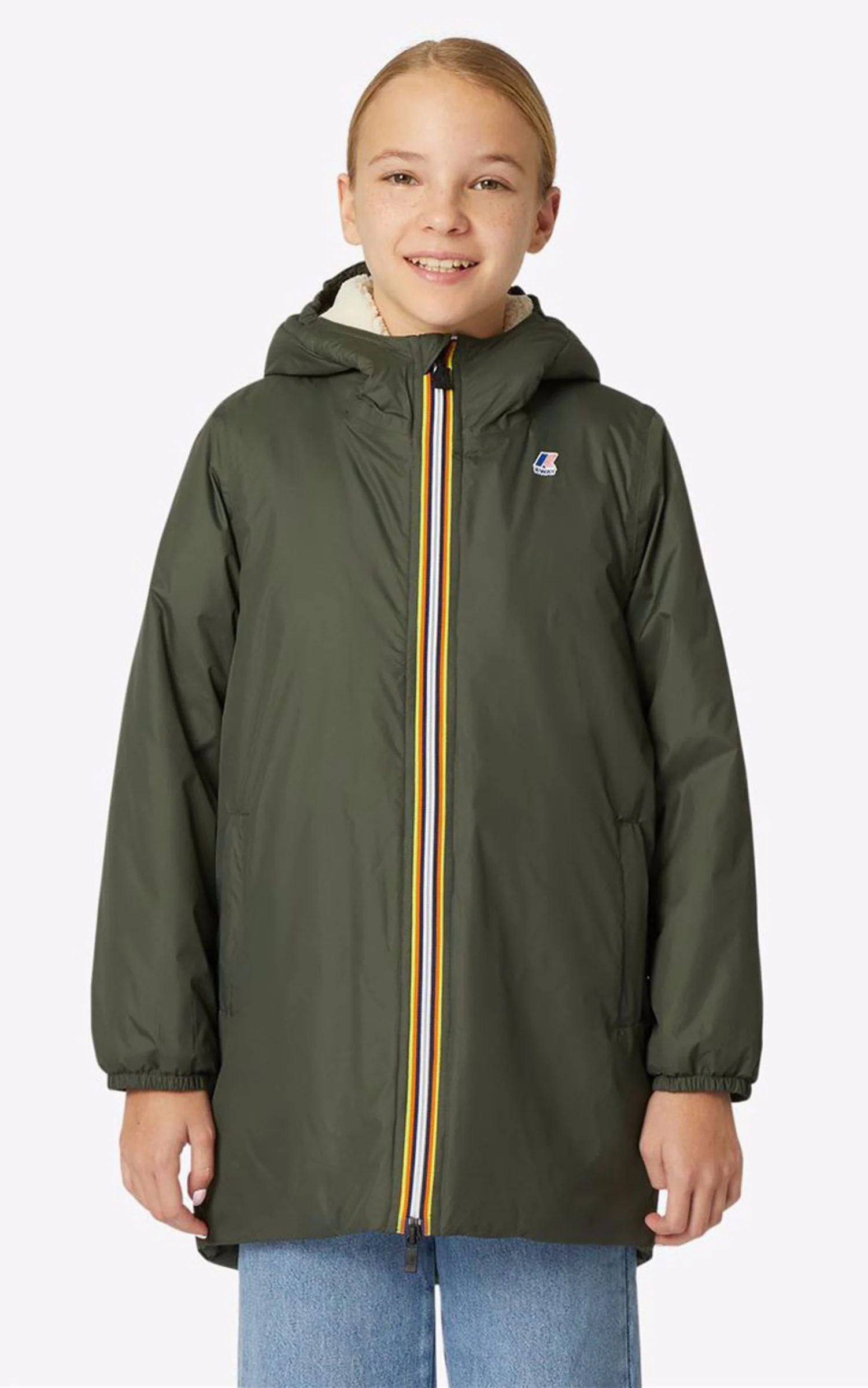 – Fermeture zippée double curseurs avec bande tricolore