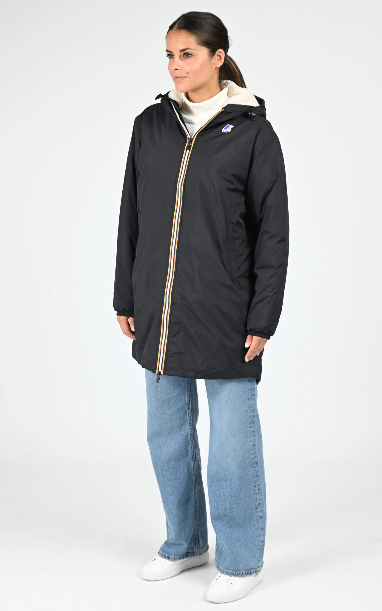 – Fermeture zippée double curseurs avec bande tricolore