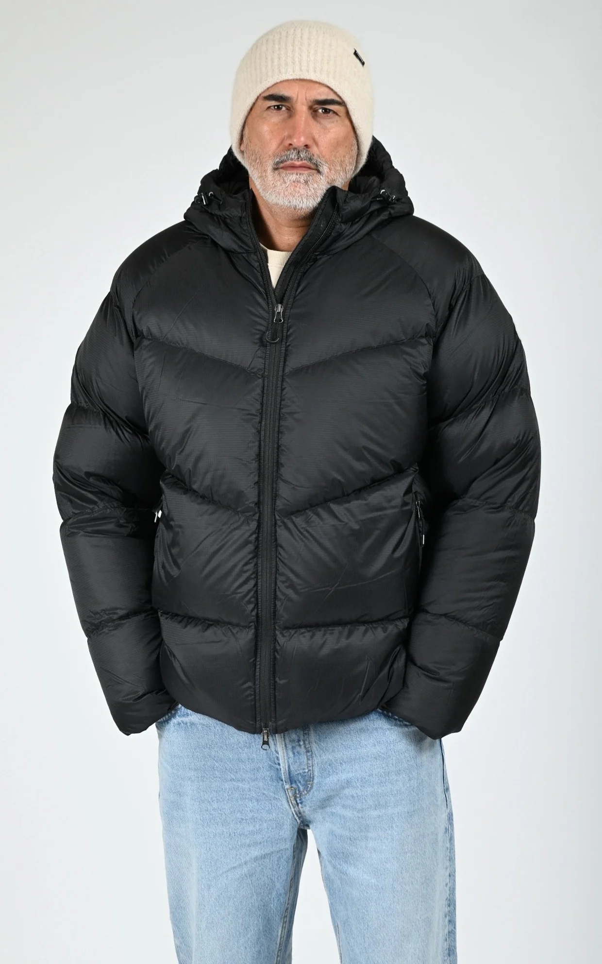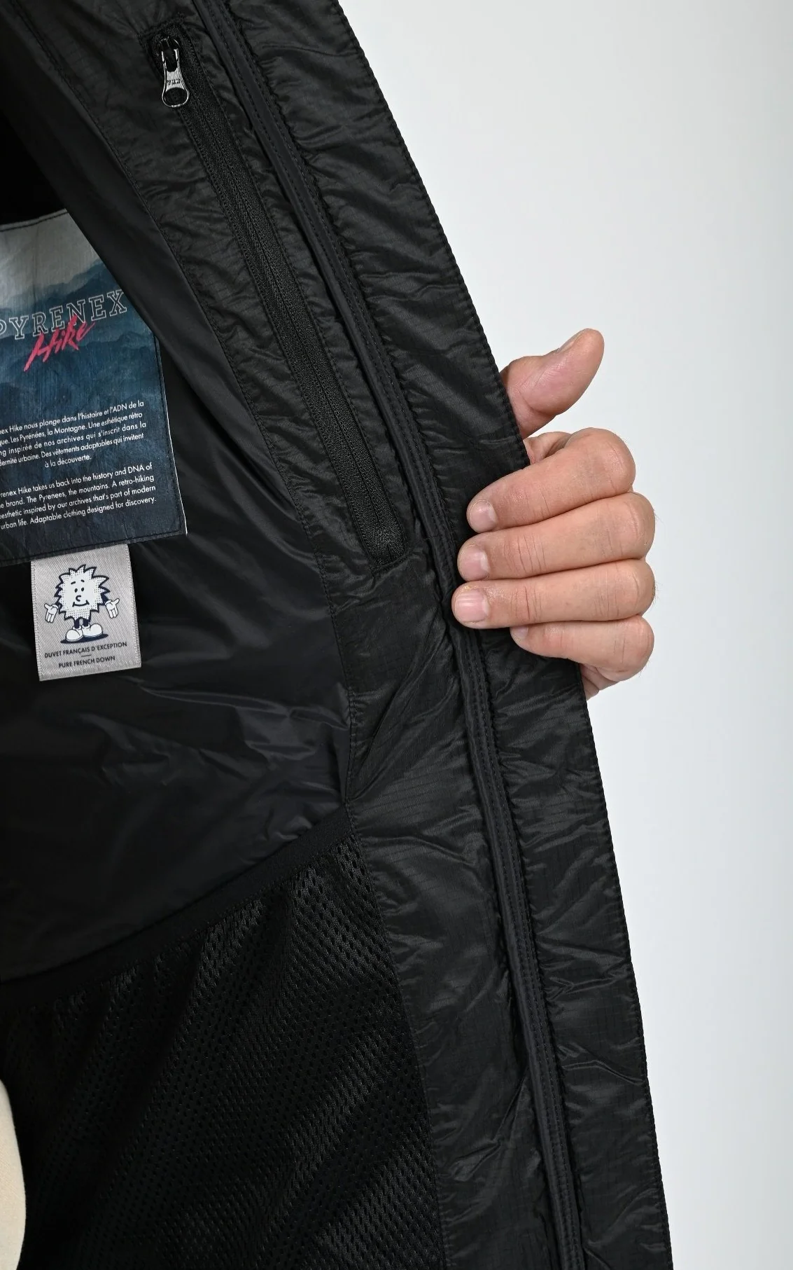– Capuche ajustable par cordon élastique, stoppeurs et perle