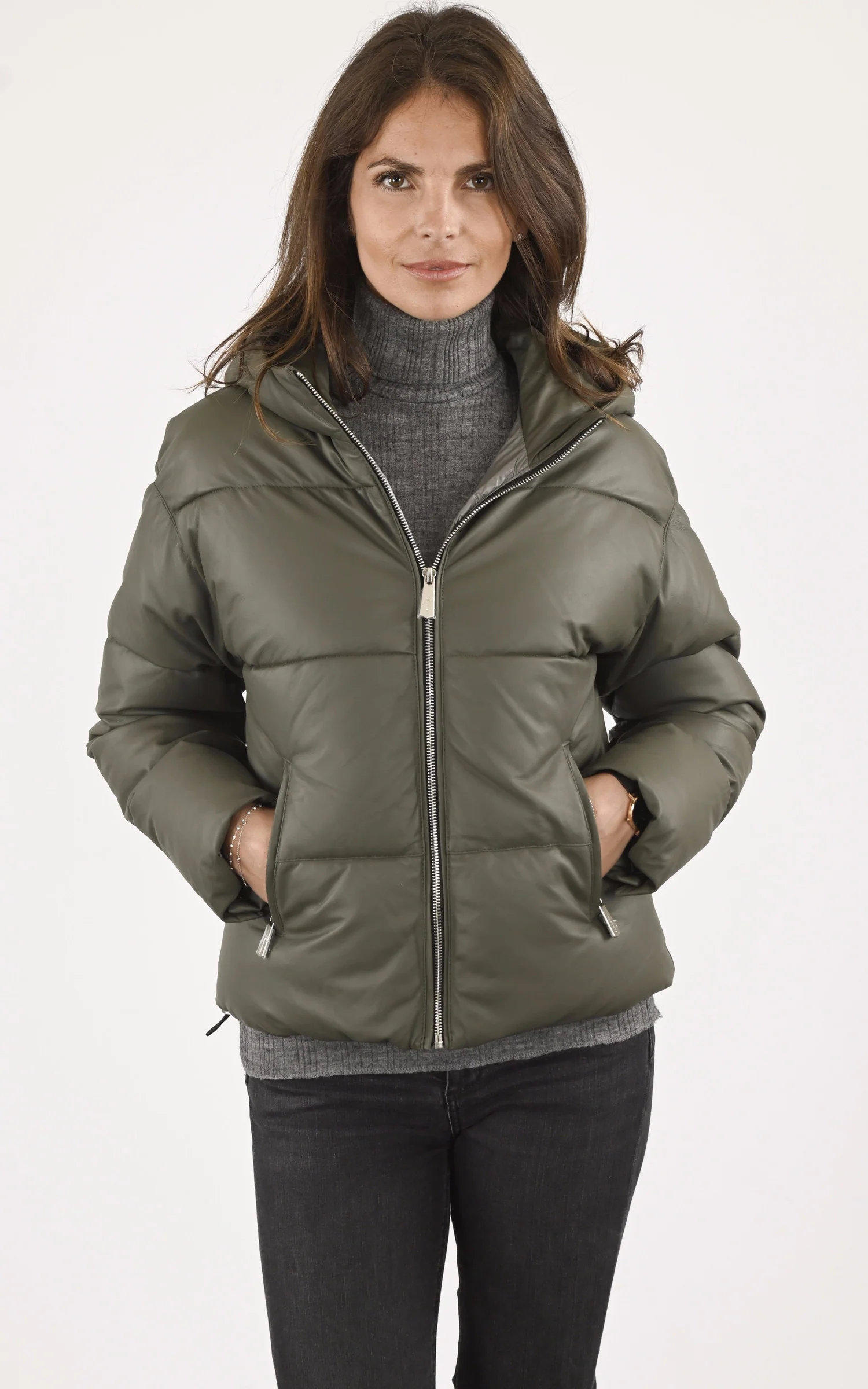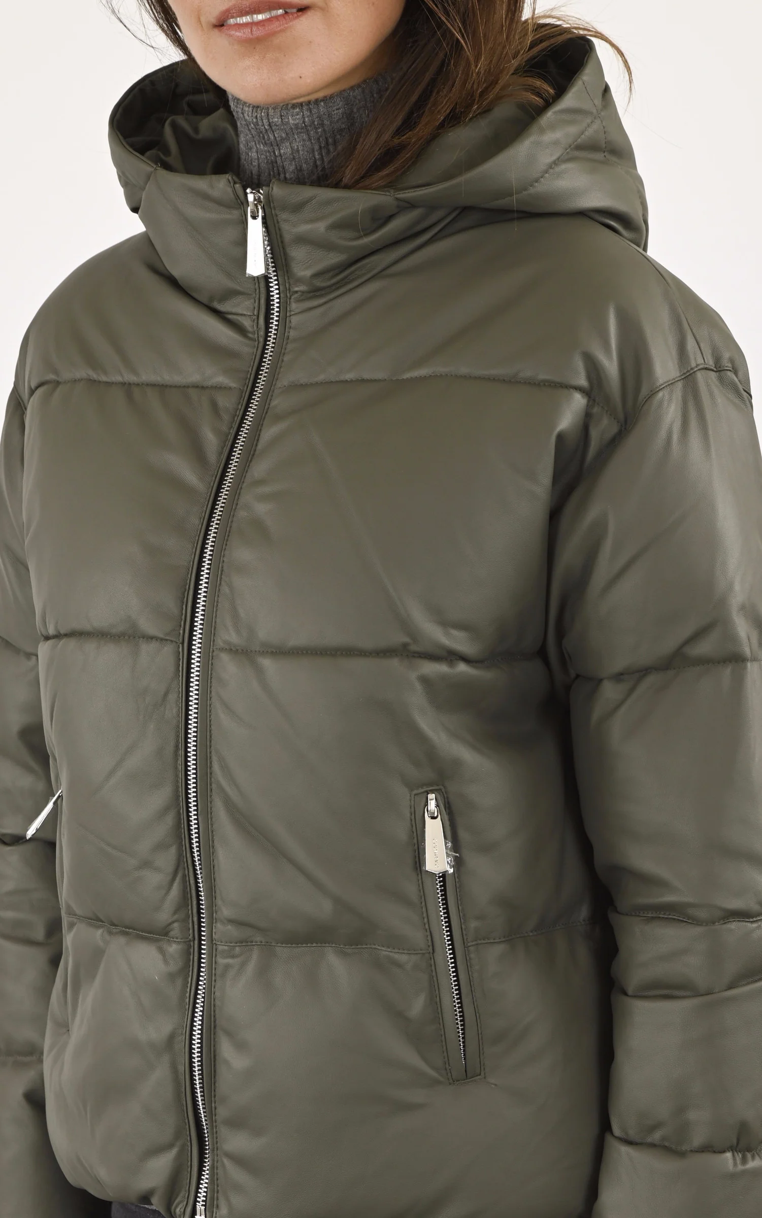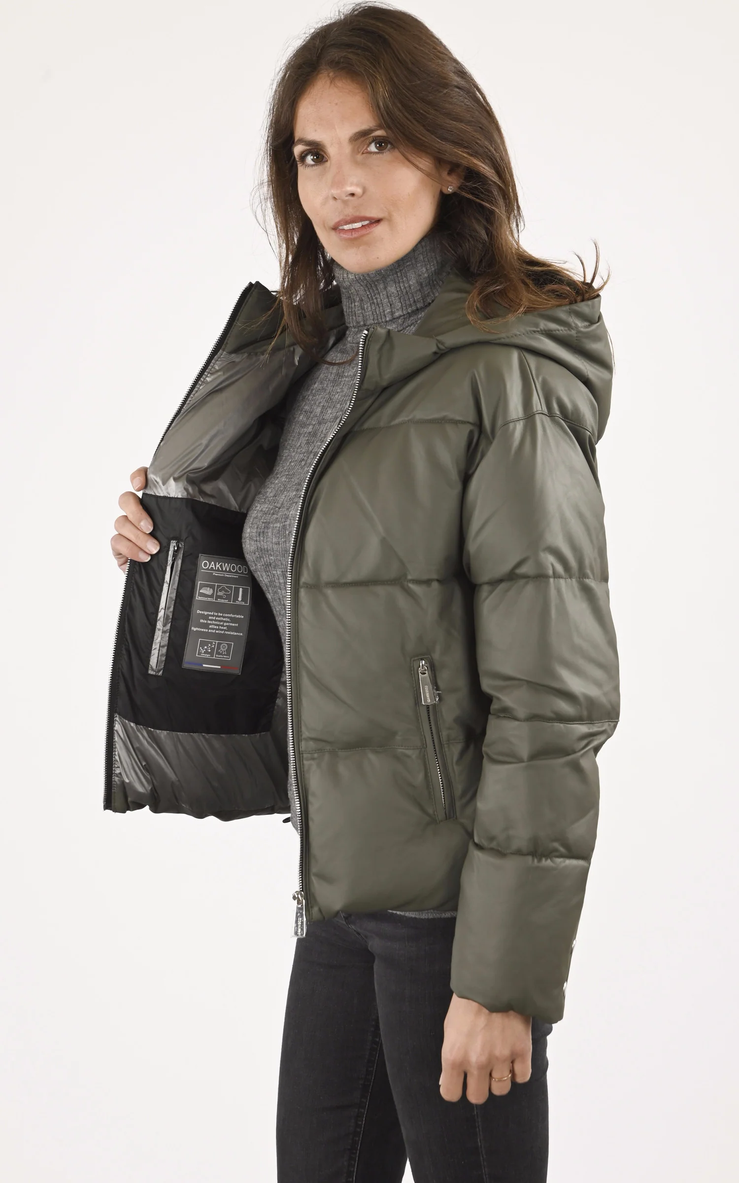 Doudoune minimaliste en cuir d’agneau modèle Object de la marque Oakwood