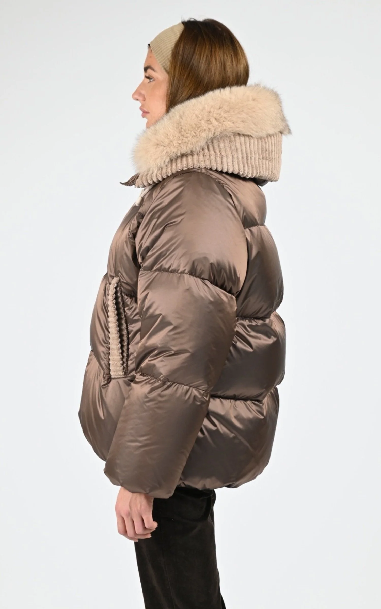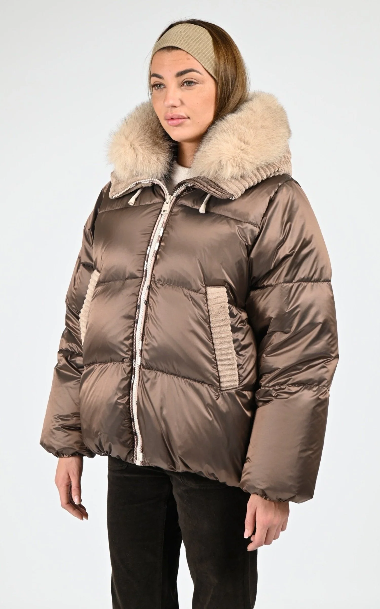 – Capuche bordée de fourrure de renard bleu finlandais teinté Label Saga Fur et amovible par boutons