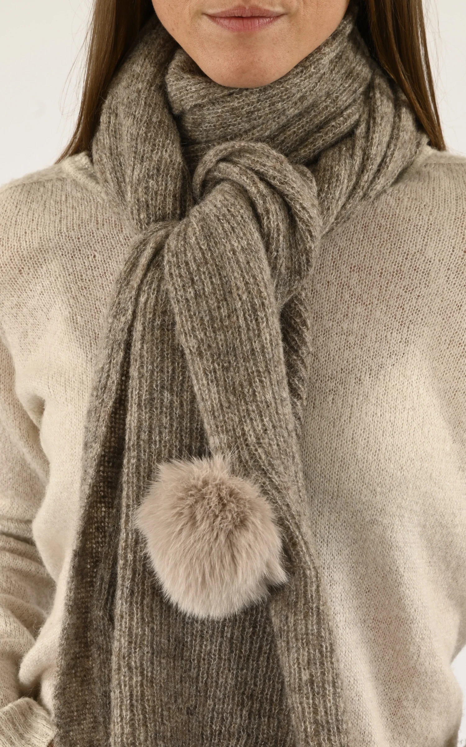 Echarpe en laine d’alpaga, cachemire et fourrure de la marque Léa Clément.
