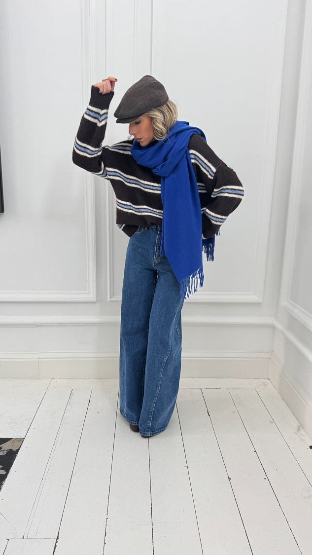Cette écharpe couleur bleu électrique séduit par son élégance naturelle avec une étiquette brodée « Cachemere » et de la composition de ses matières, elle allie douceur, confort et style intemporel.