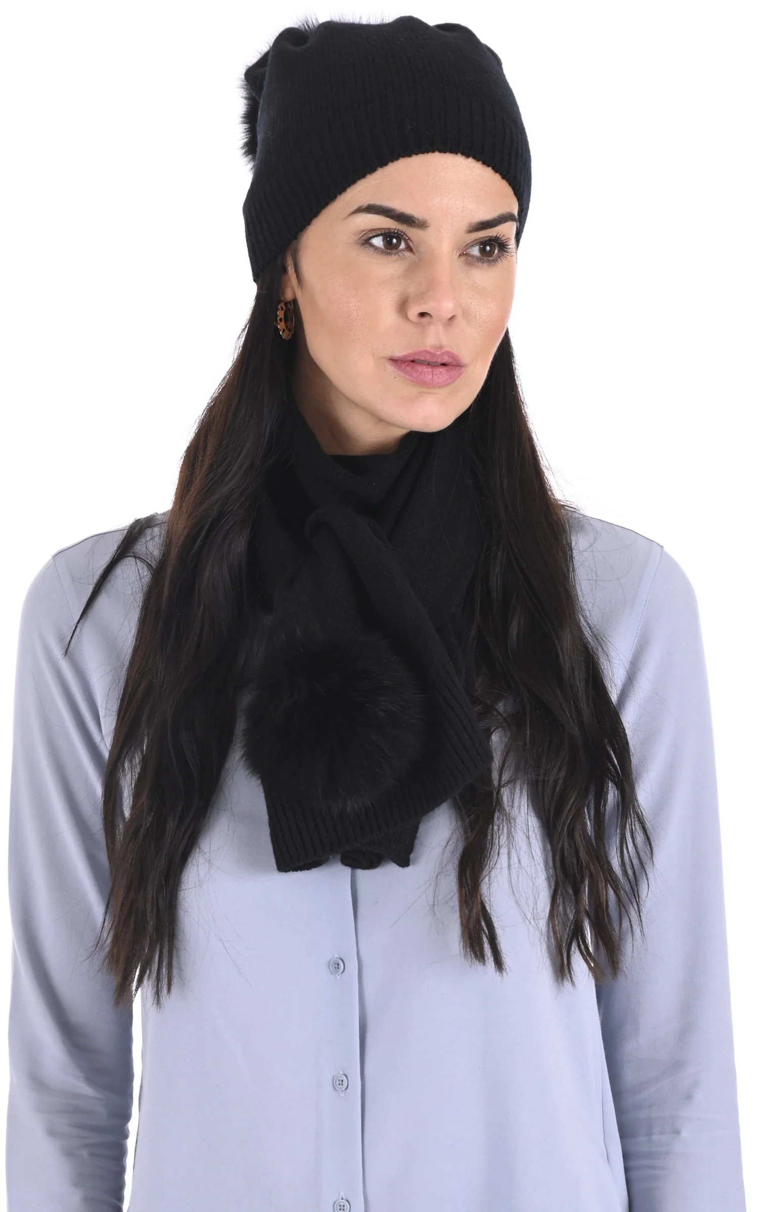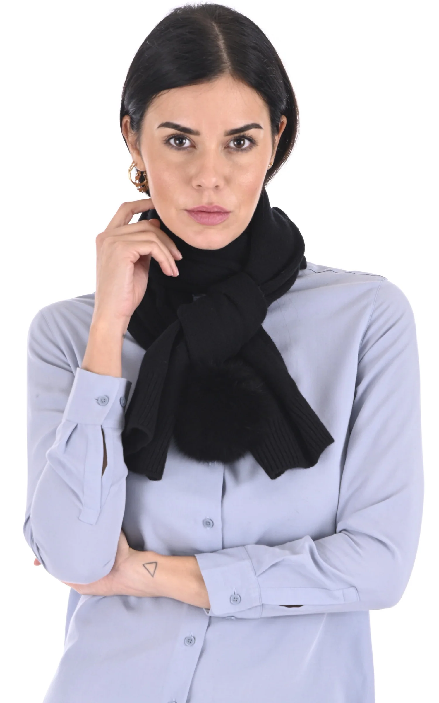 Écharpe en laine d’agneau mérinos, cachemire et fourrure de la marque Léa Clément.