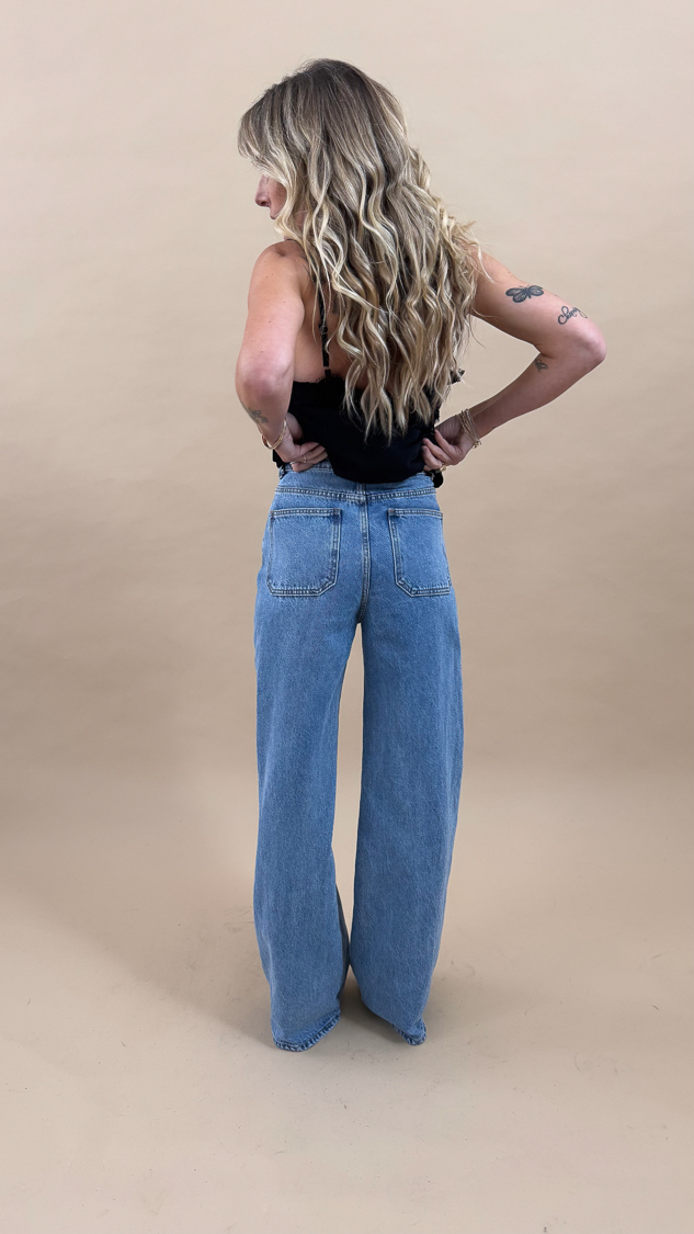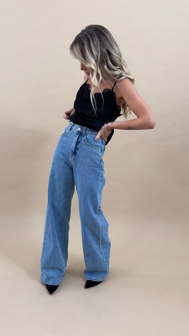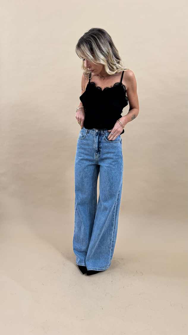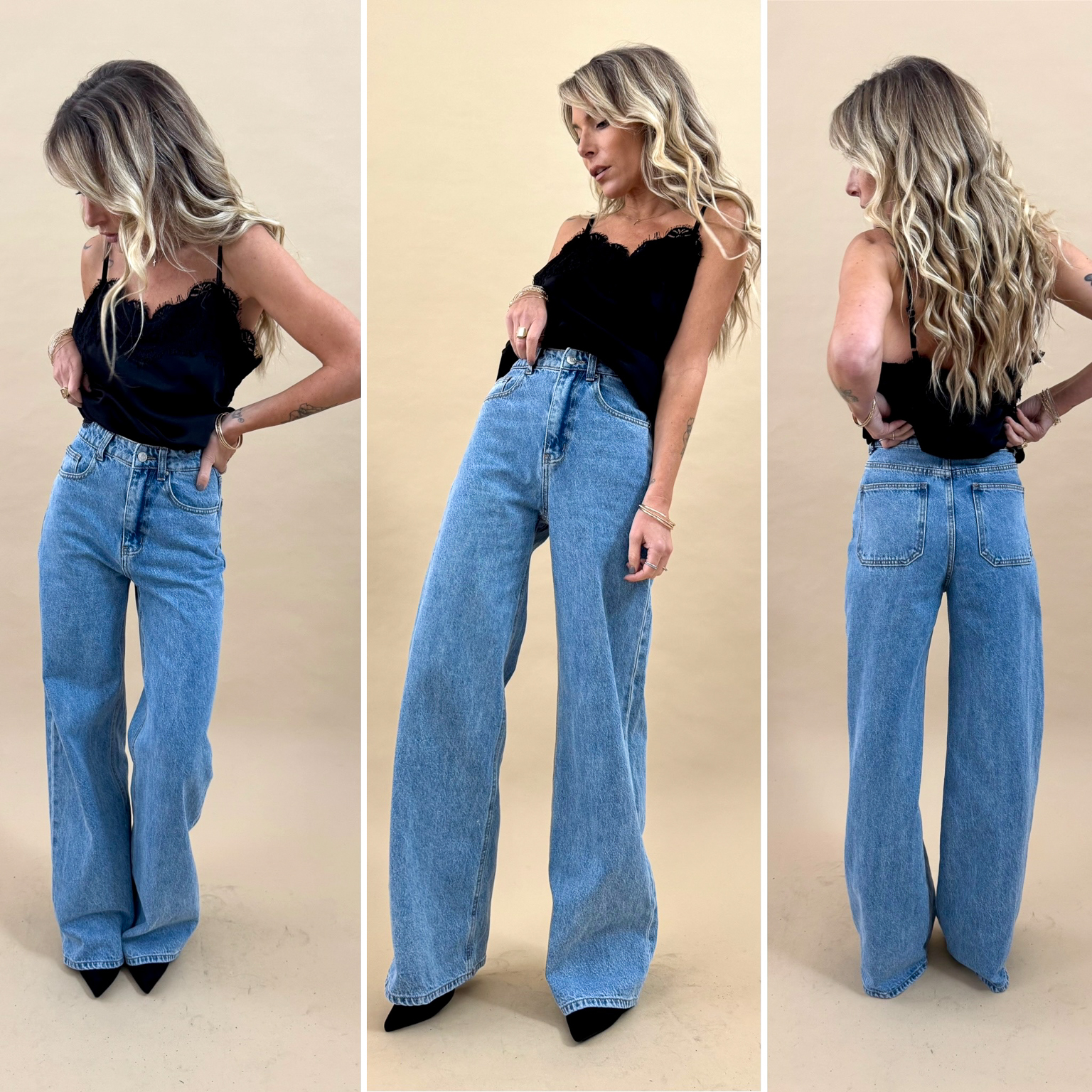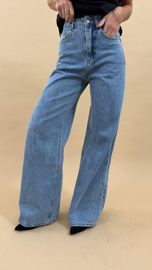 Le jean bleu évasé, taille haute, la pièce à avoir dans votre dressing !