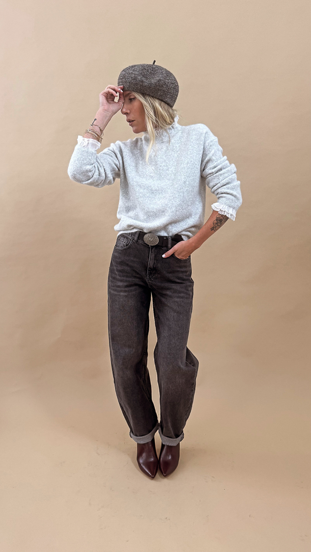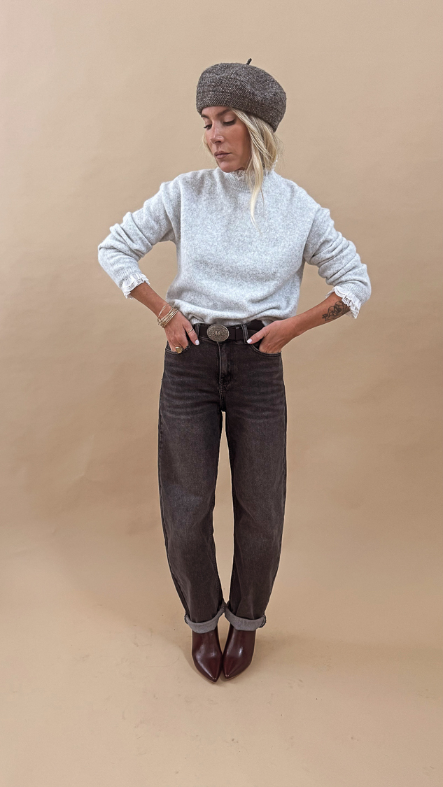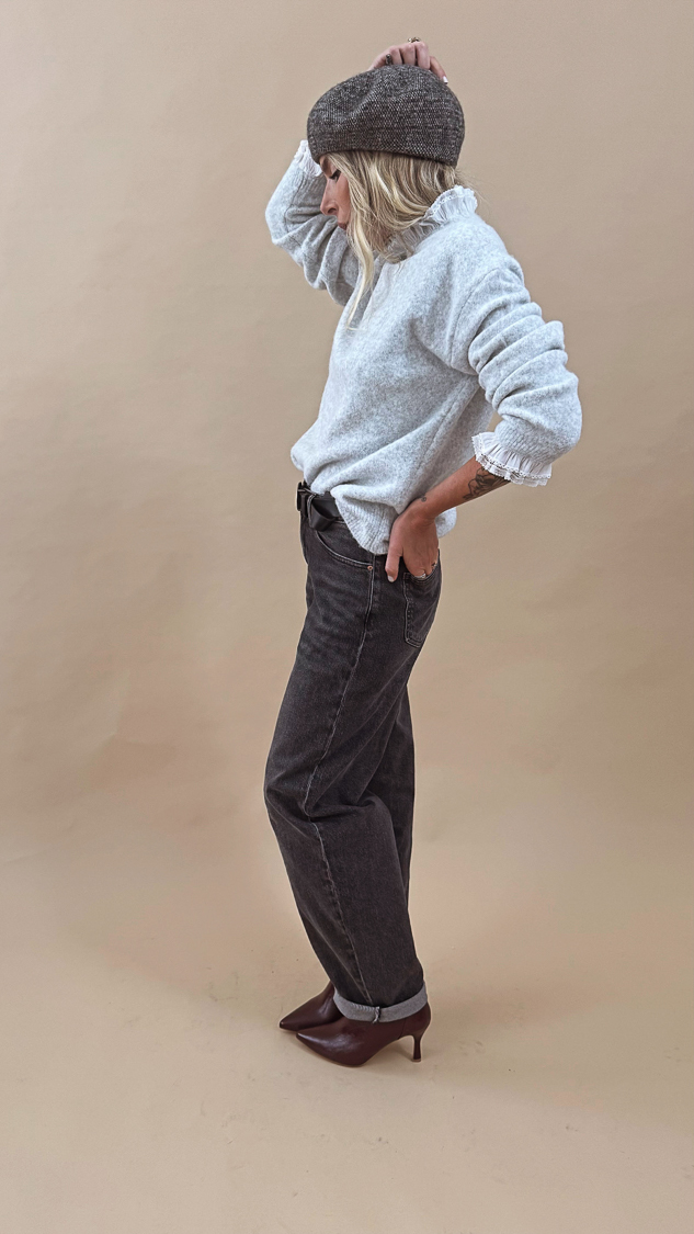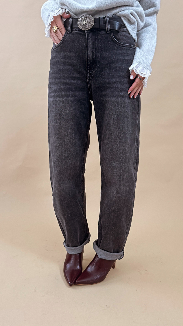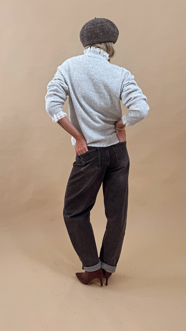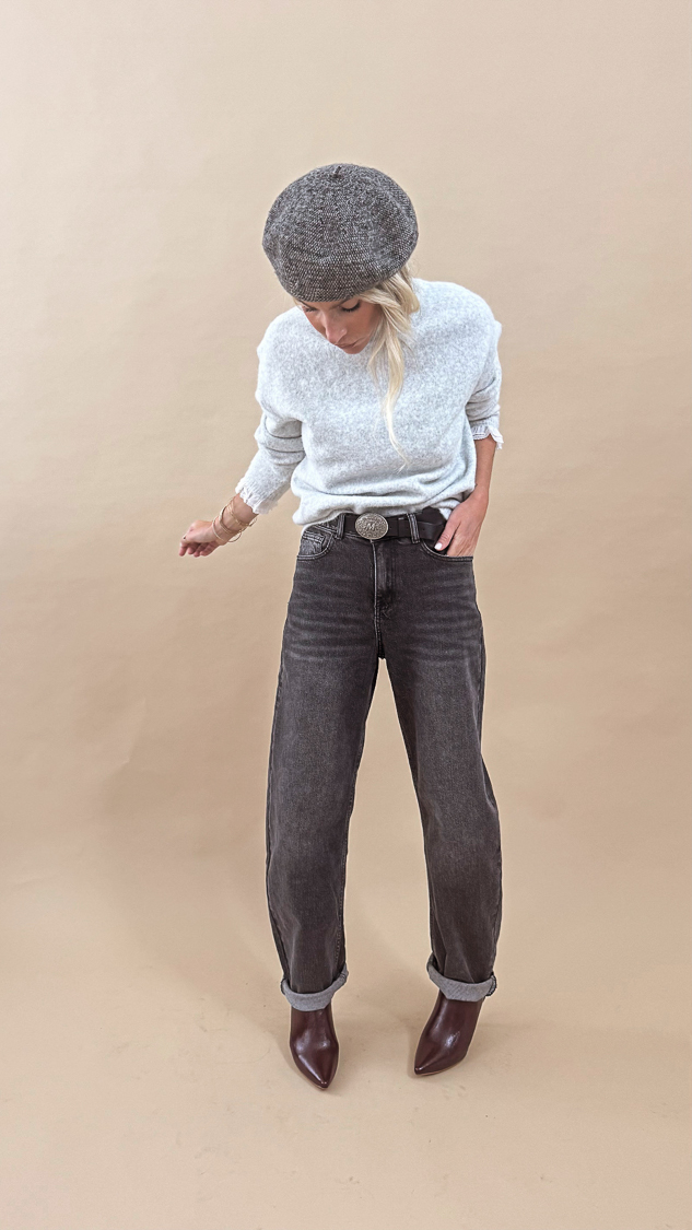Le jean gris, taille haute coupe droite style mom un basique à avoir dans son dressing !