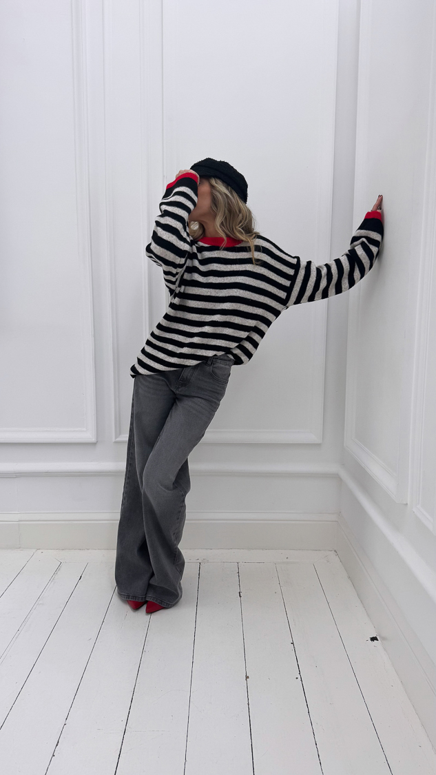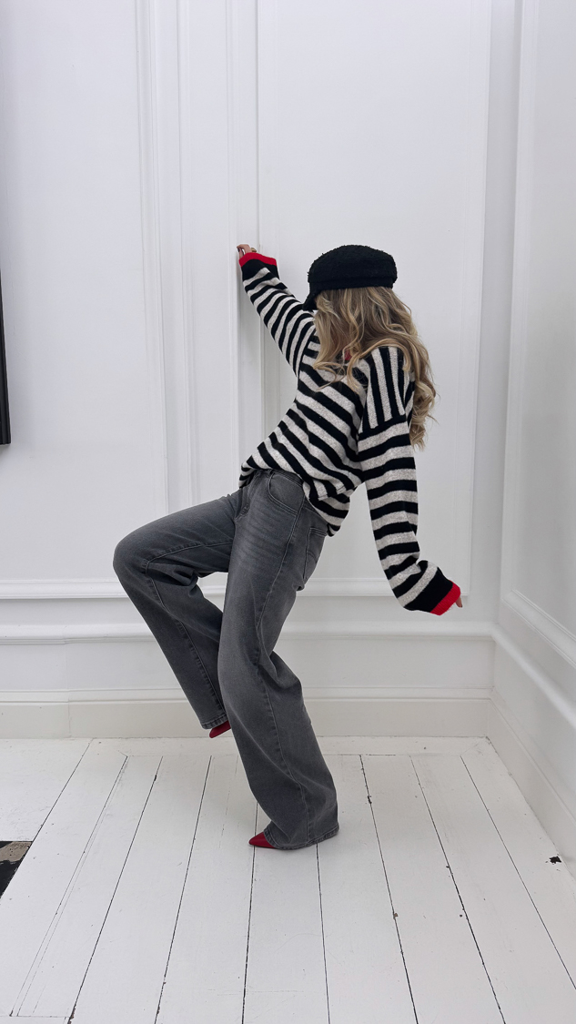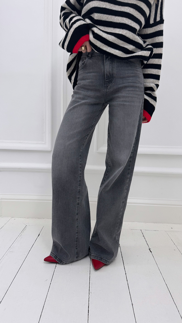 Le jean gris coupe droite légèrement évasé, taille haute, un basique à avoir dans votre dressing !
