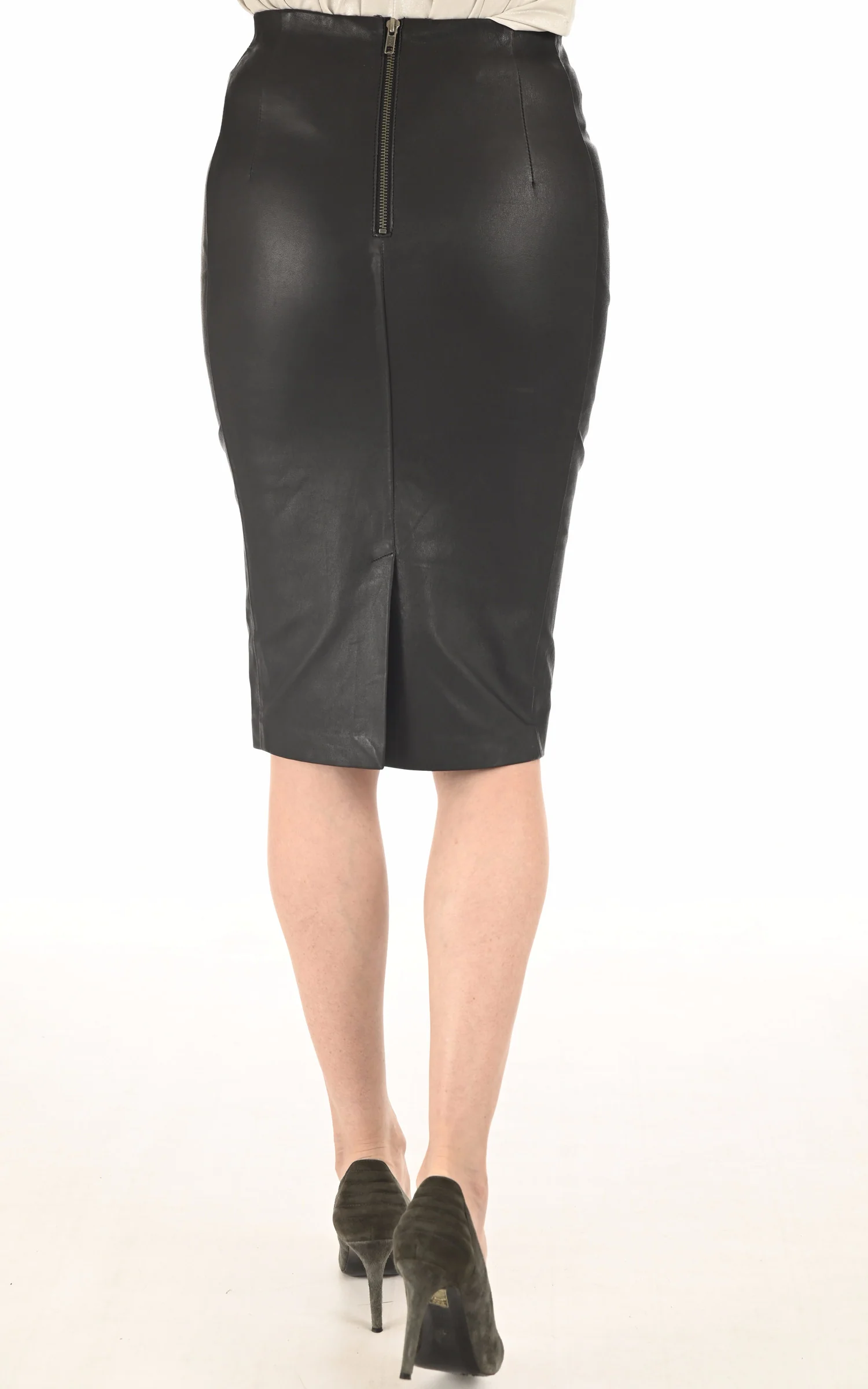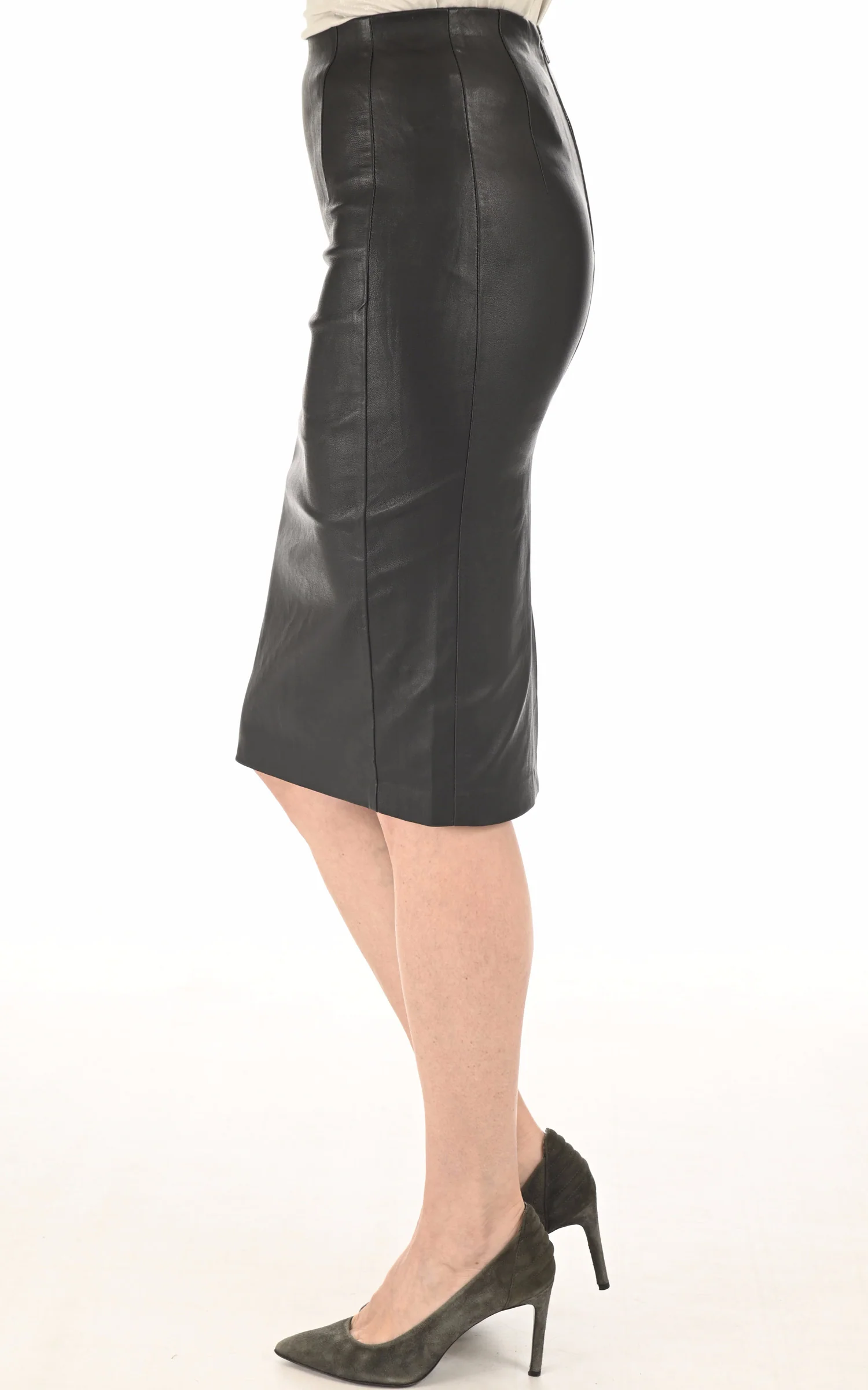Jupe ajustée style crayon en cuir d’agneau stretch modèle Deanne