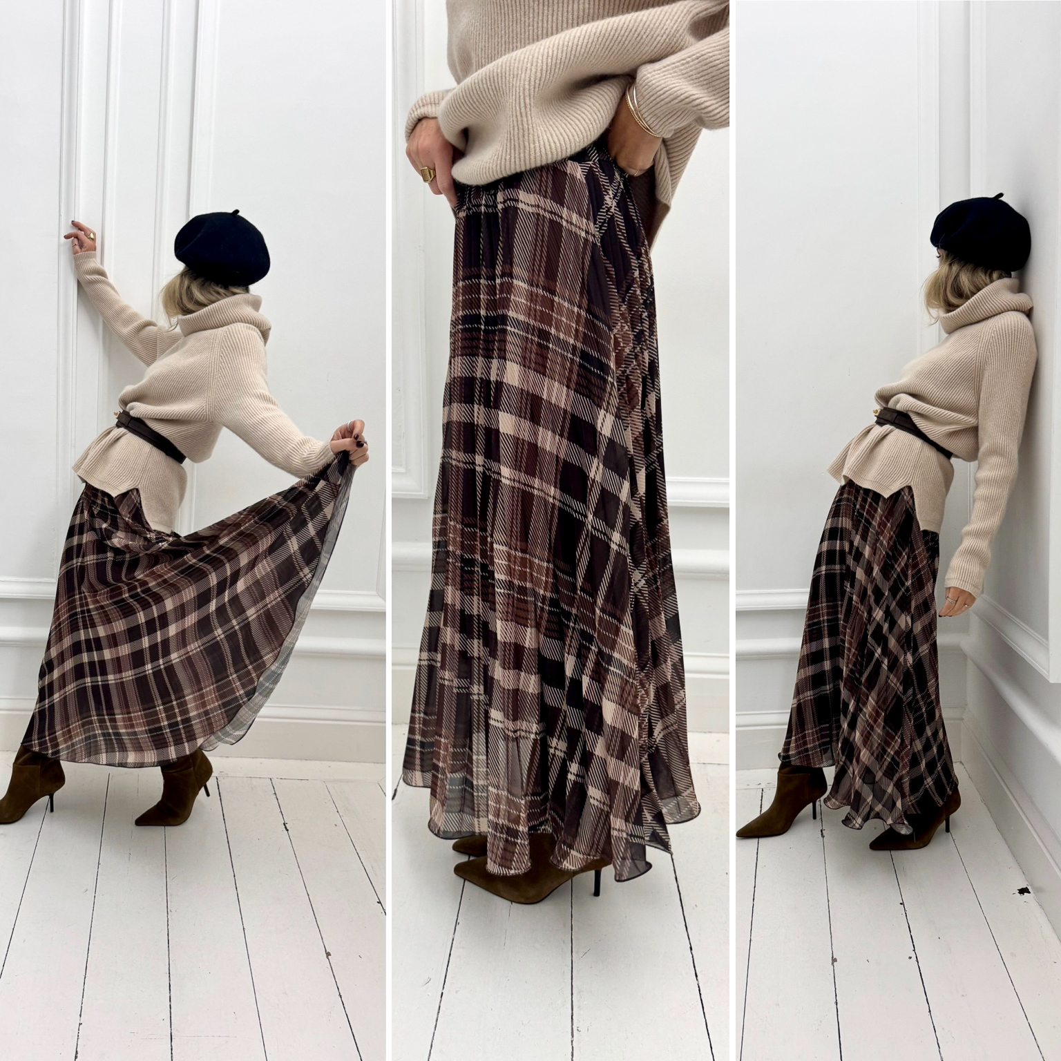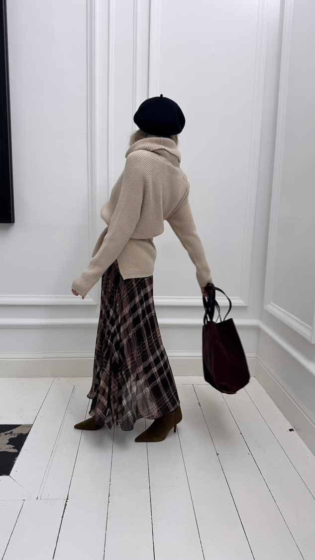 La jupe longue à carreaux plissée et son tissu fluide et doublé offre un look automne-hiver tendance, sa taille est ajustée par une ceinture élastique!