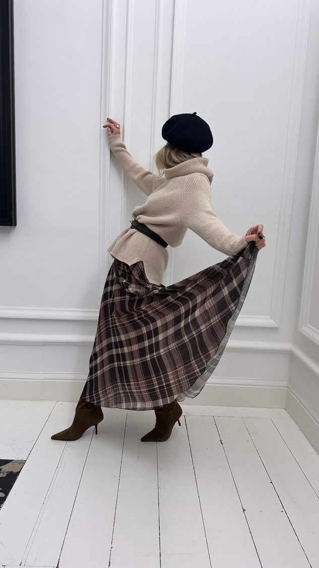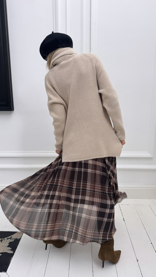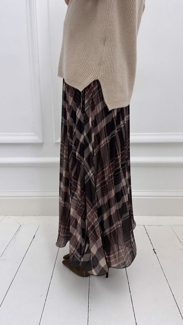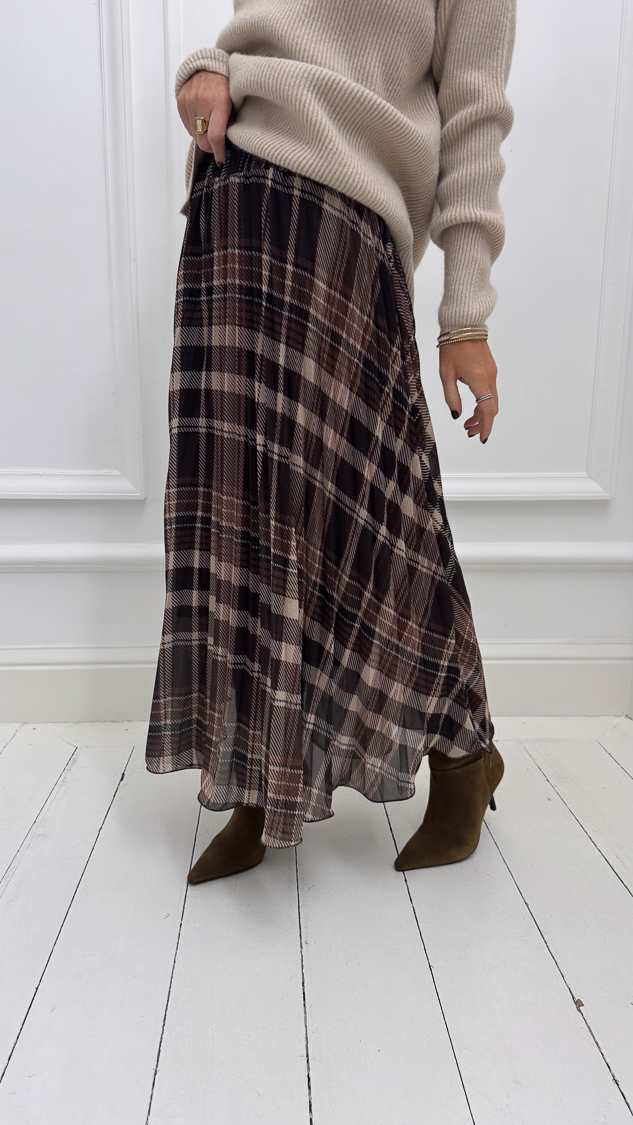 Jupe longue plissée à carreaux