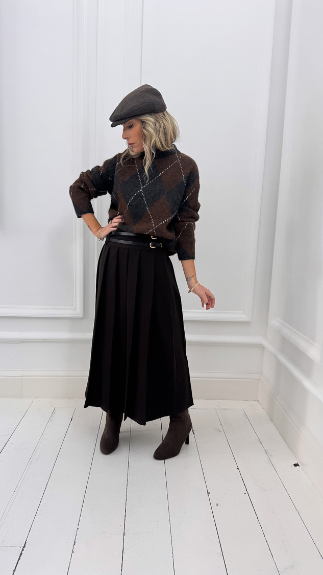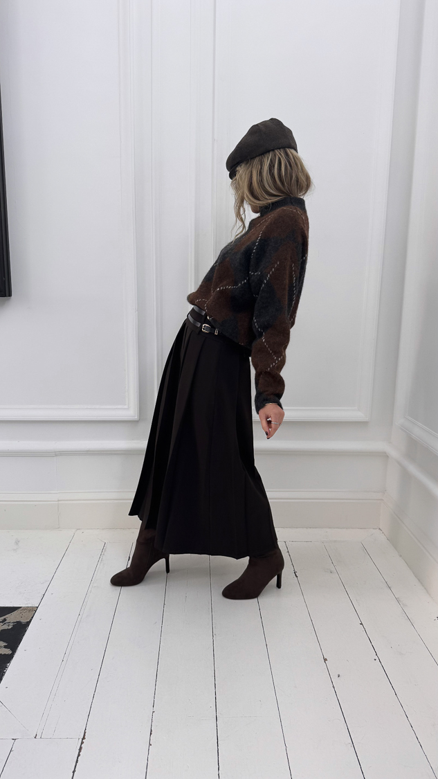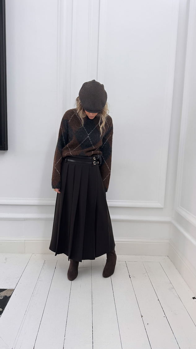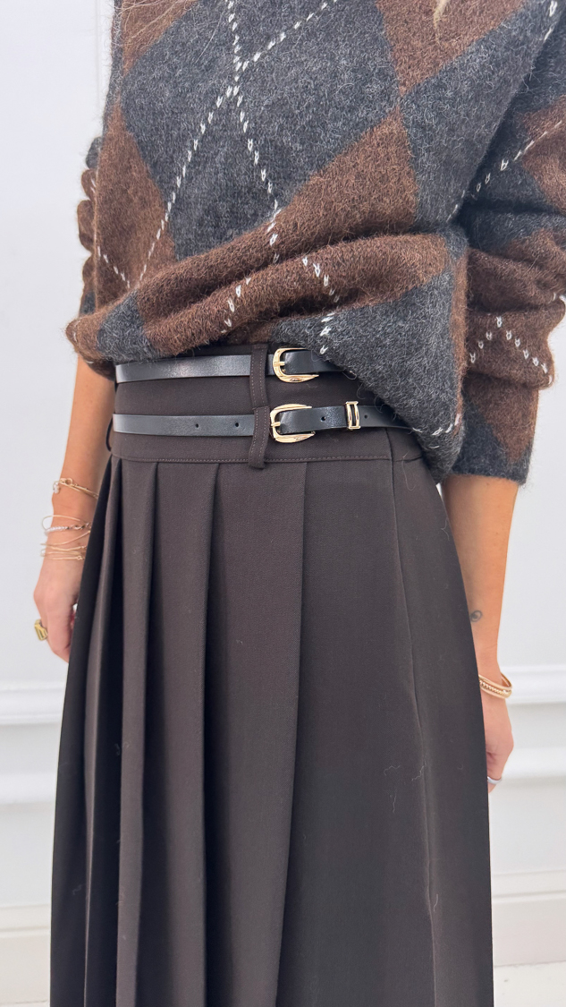 Jupe plissée marron double ceinture