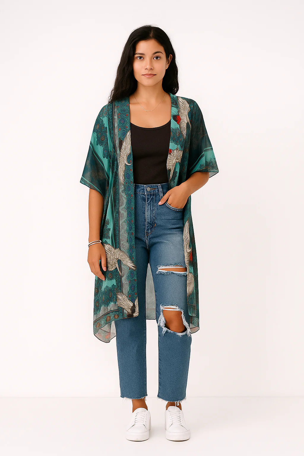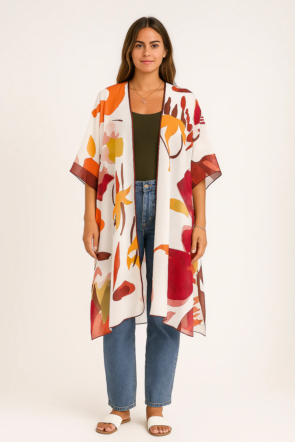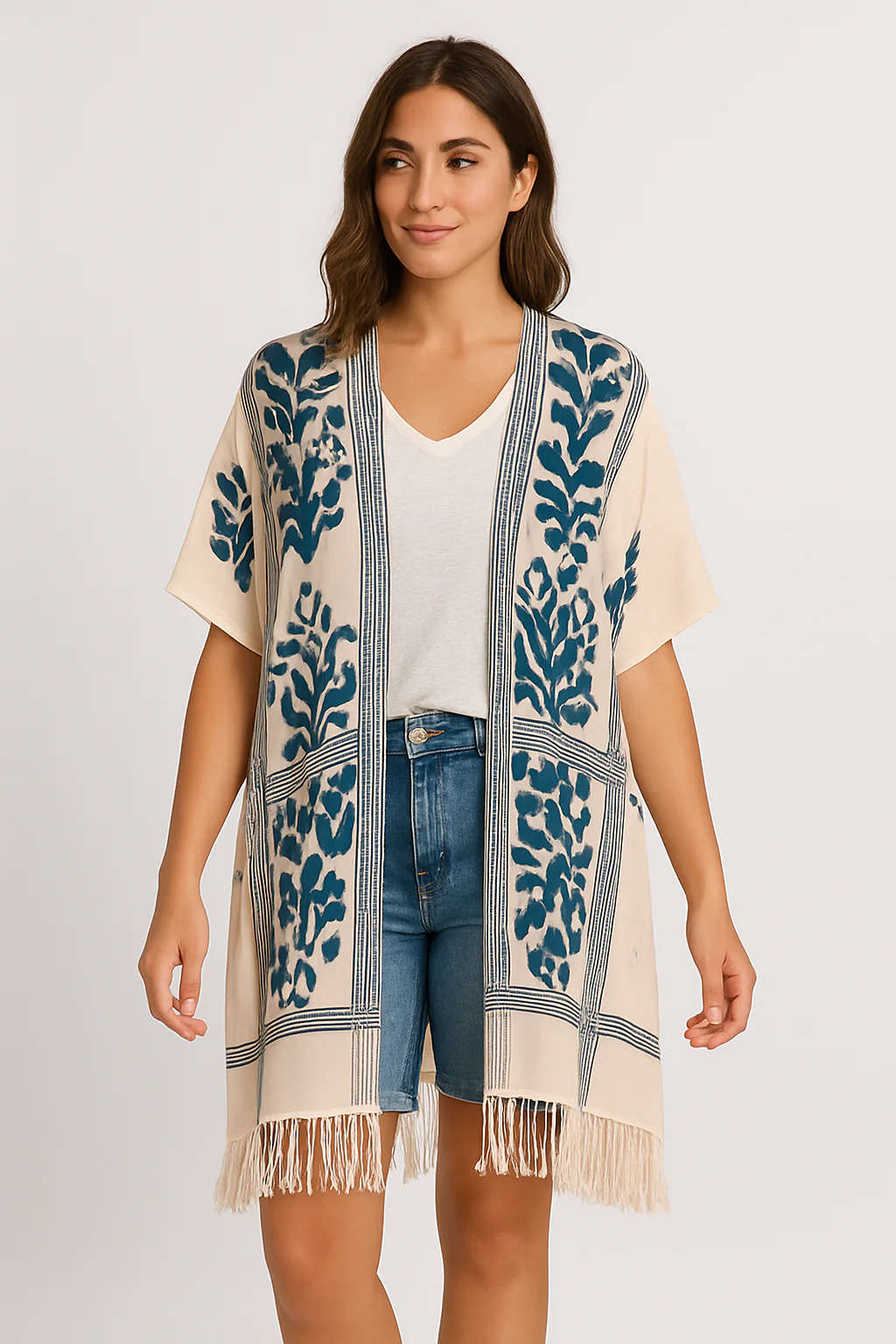 Ajoutez une touche de caractère à vos tenues avec ce kimono fluide à imprimé bohème. Confortable et ultra-stylé, il s’adapte aussi bien à vos journées détente qu’à vos looks urbains.