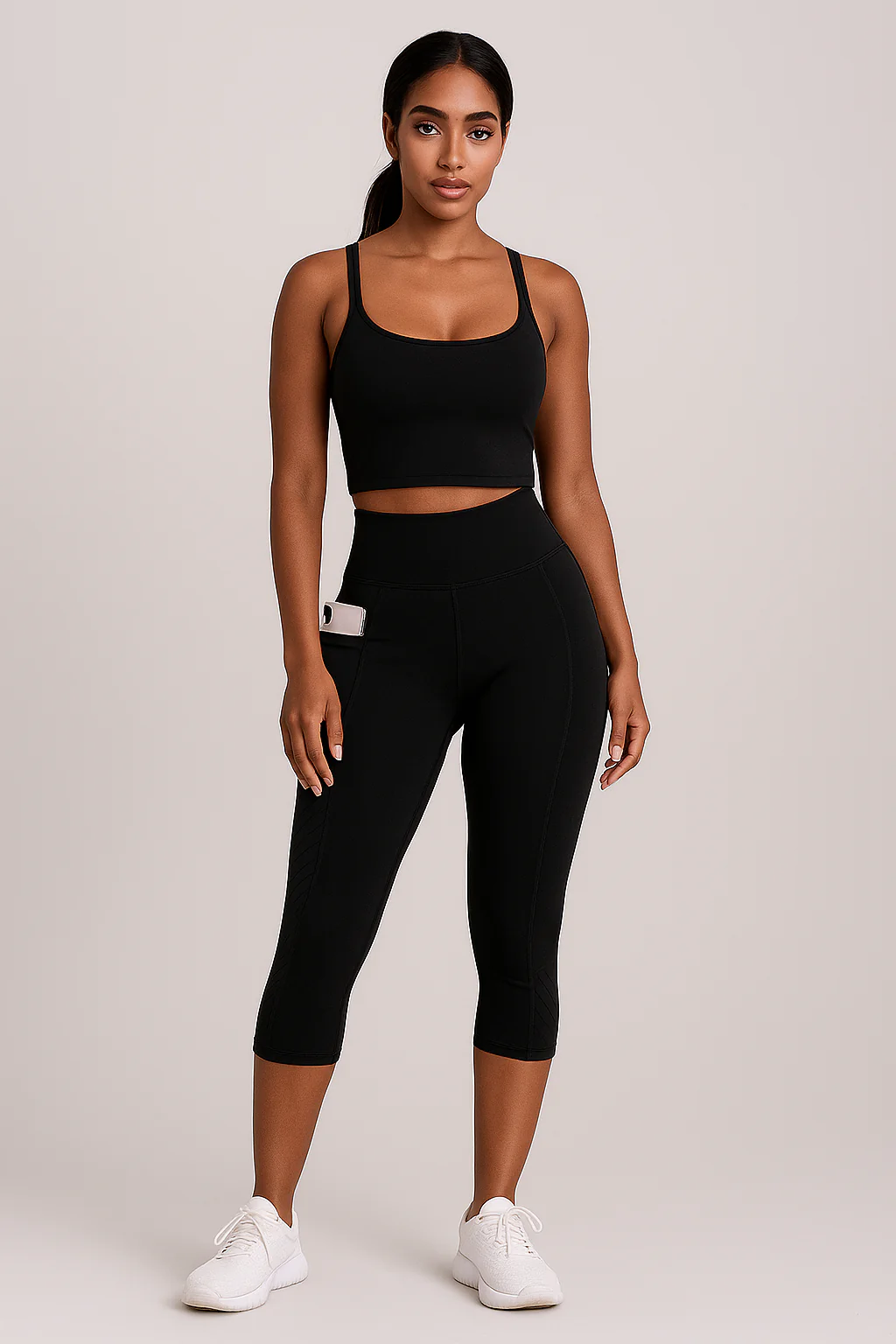 Alliez style et performance avec ce legging de sport court taille haute, pensé pour bouger librement tout en soulignant votre silhouette. Sa coupe gainante et ses finitions modernes vous accompagnent avec élégance à chaque mouvement.