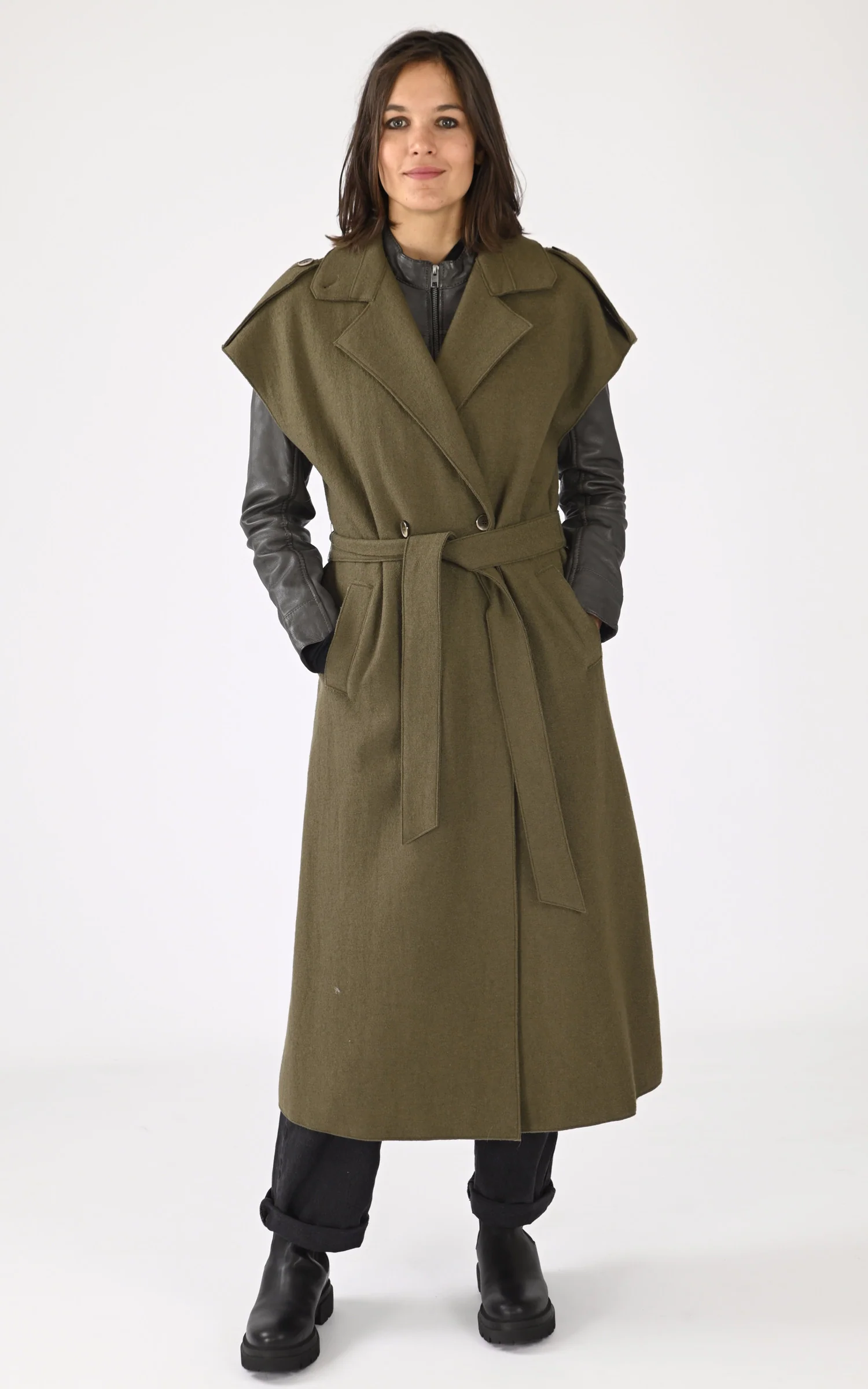 Manteau sans manche vert modèle Donia de la marque Oakwood.