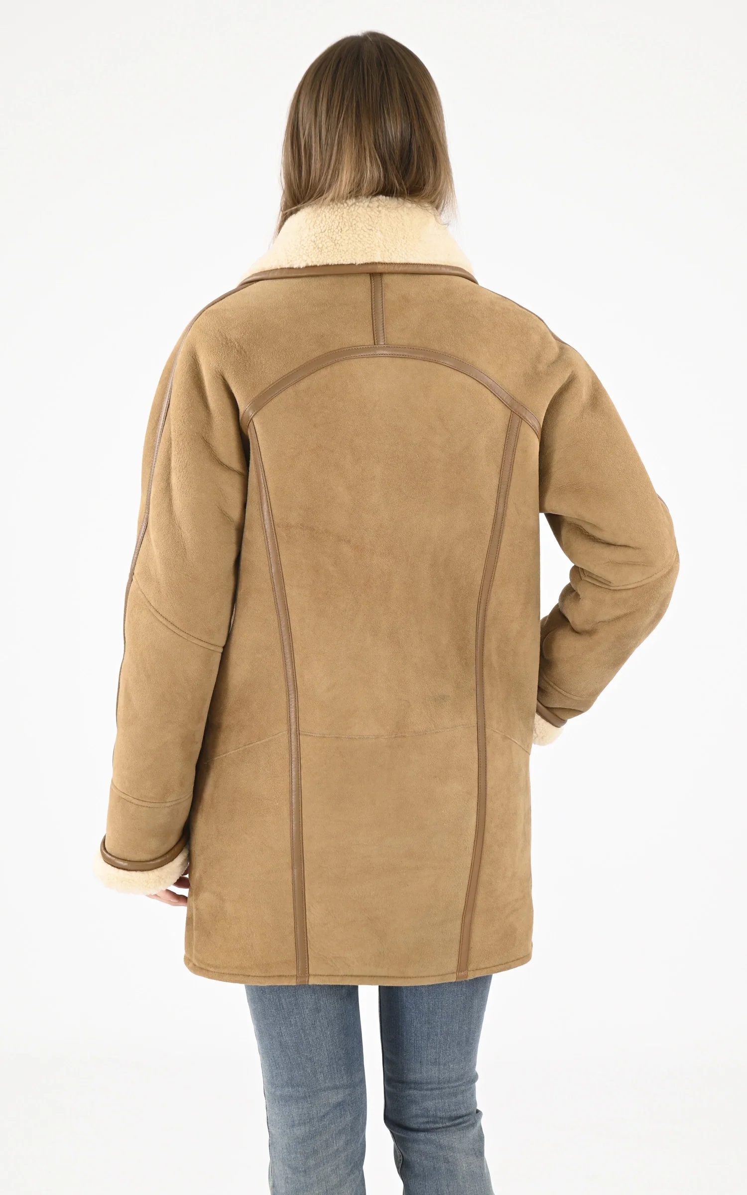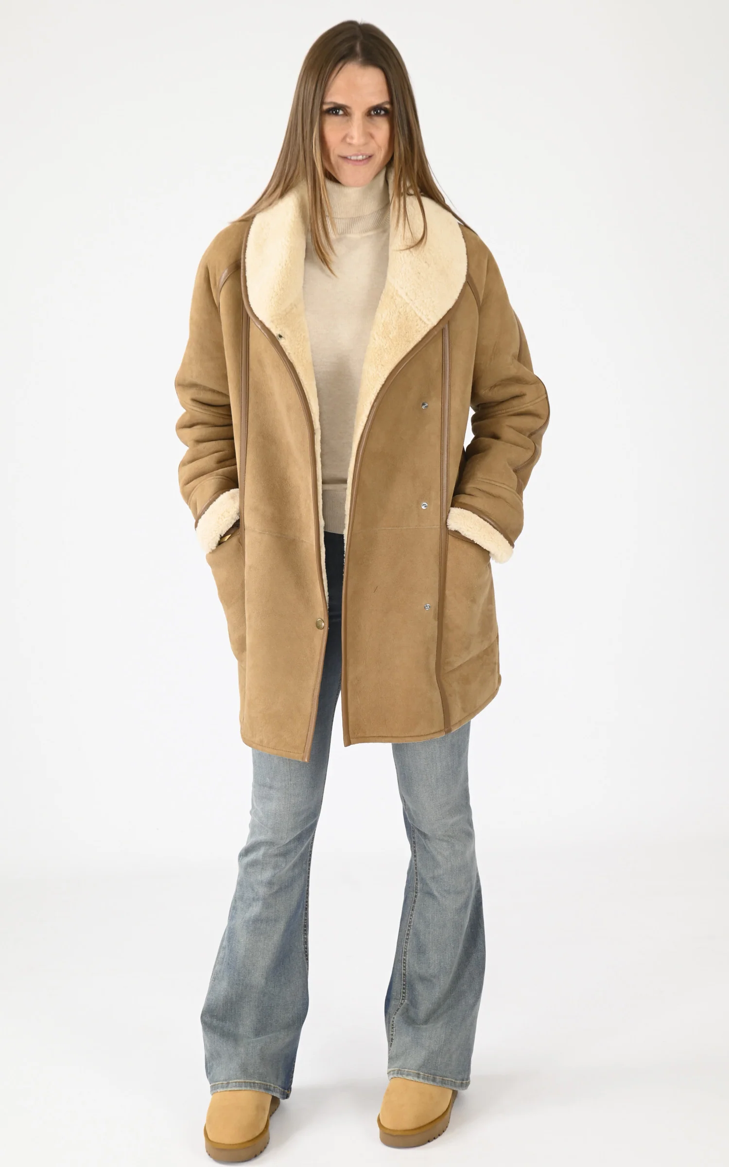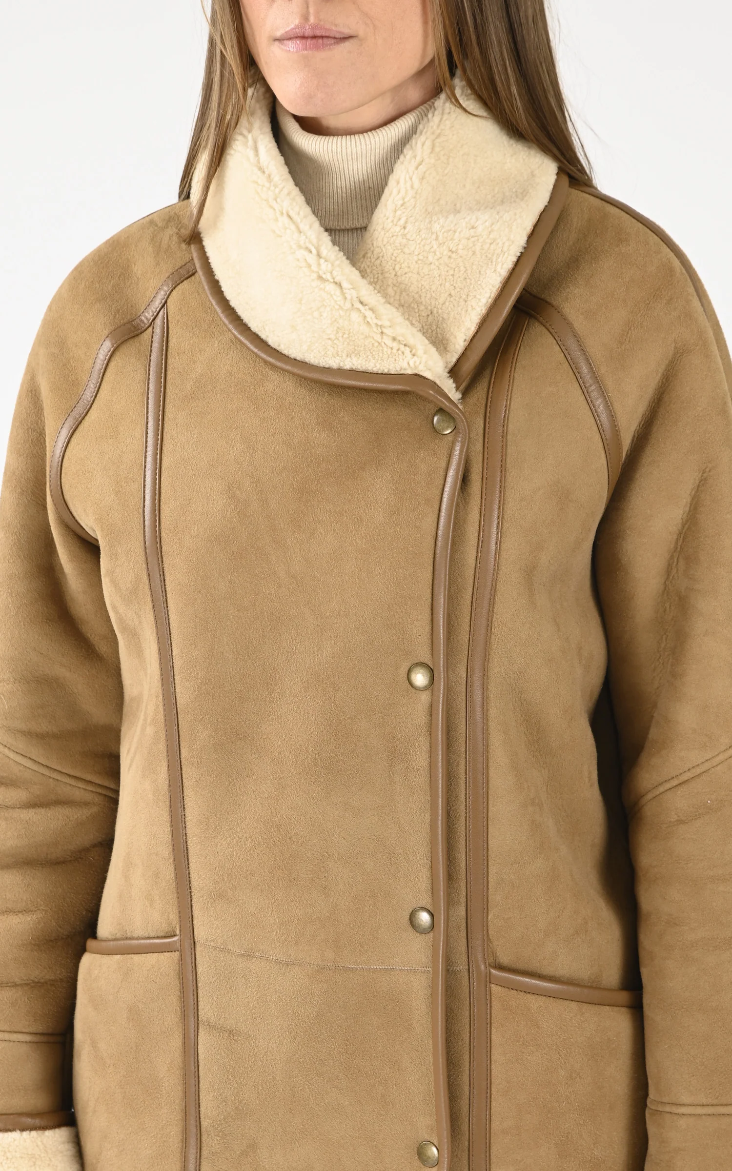 Manteau peau lainée modèle Serena Lungo à la coupe oversize esprit vintage 70’s
