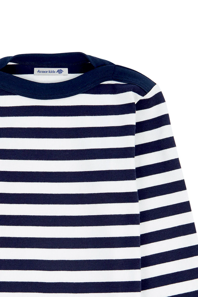 Une marinière idéale pour nos moussaillons ! Sa coupe près du corps et ses coutures détaillées aux épaules ajoutent un côté chic et élégant à ses tenues.