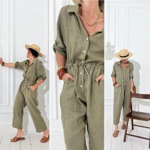 La pantalon beige à rayures, avec corde, parfait pour la saison !