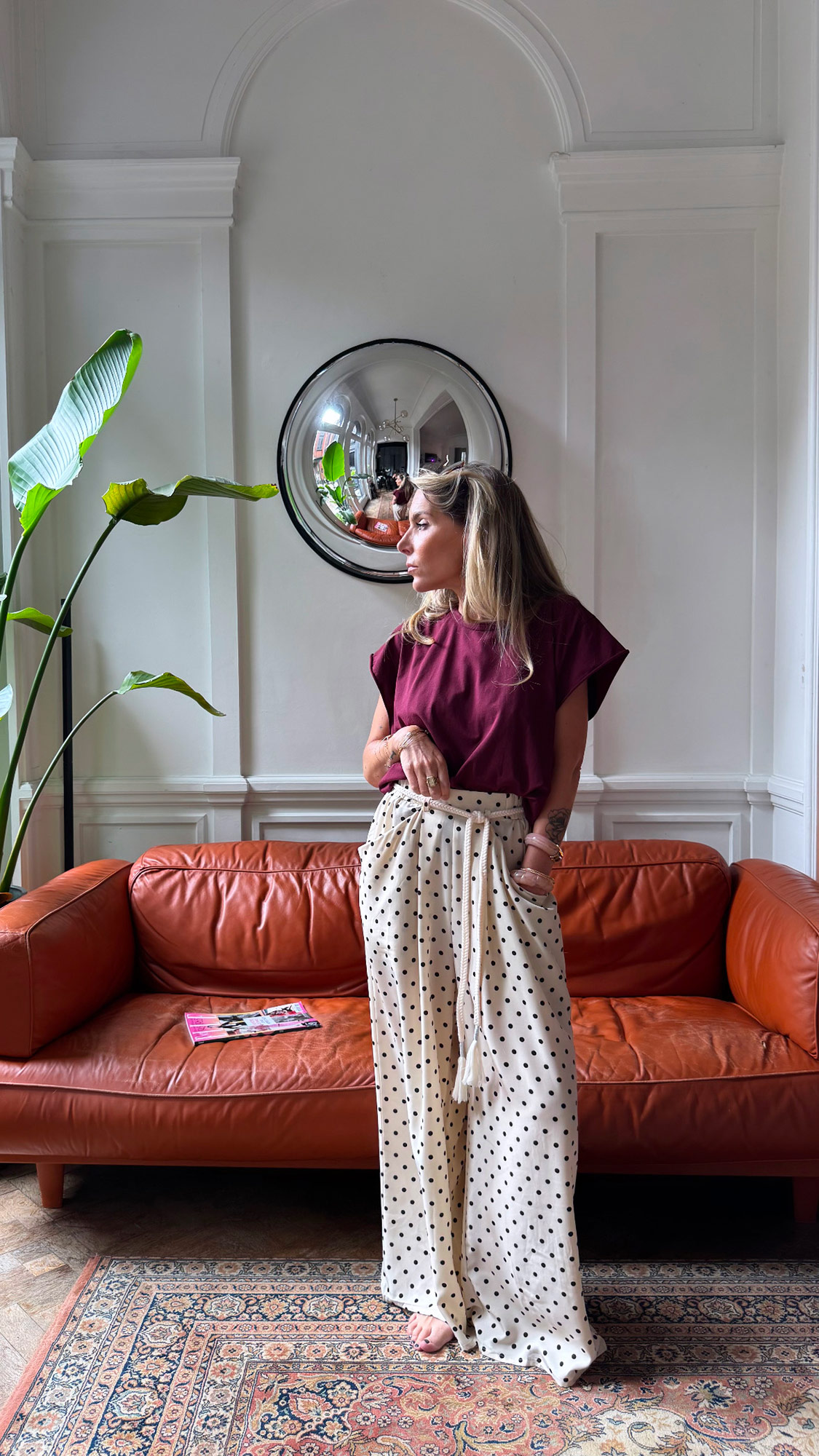 Le pantalon à pois crème fluide et élastiqué au niveau de la ceinture, s’associera parfaitement avec un petit top de la nouvelle collection !