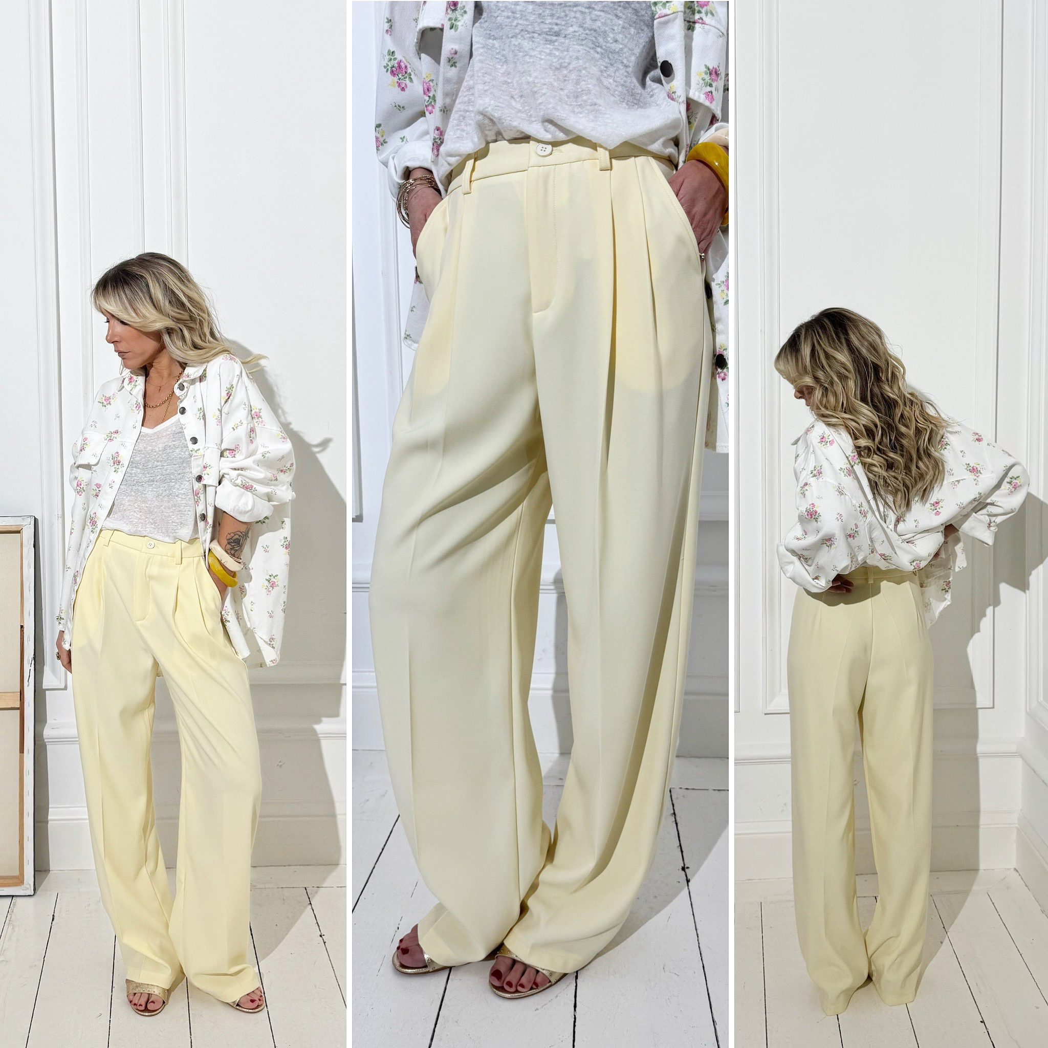 Le pantalon jaune pâle à pinces, pour un look ultra tendance !