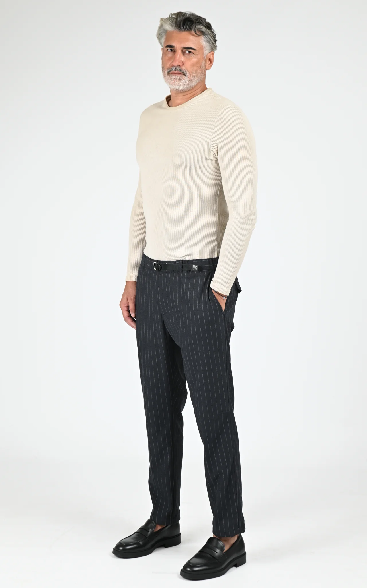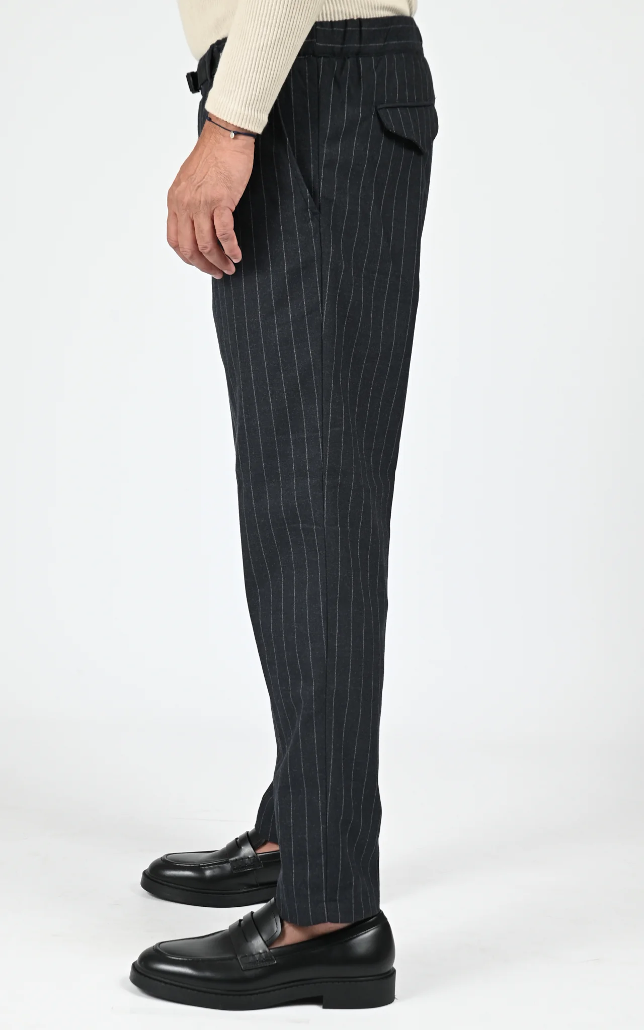 Pantalon droit toucher doux façon laine motif rayures tennis